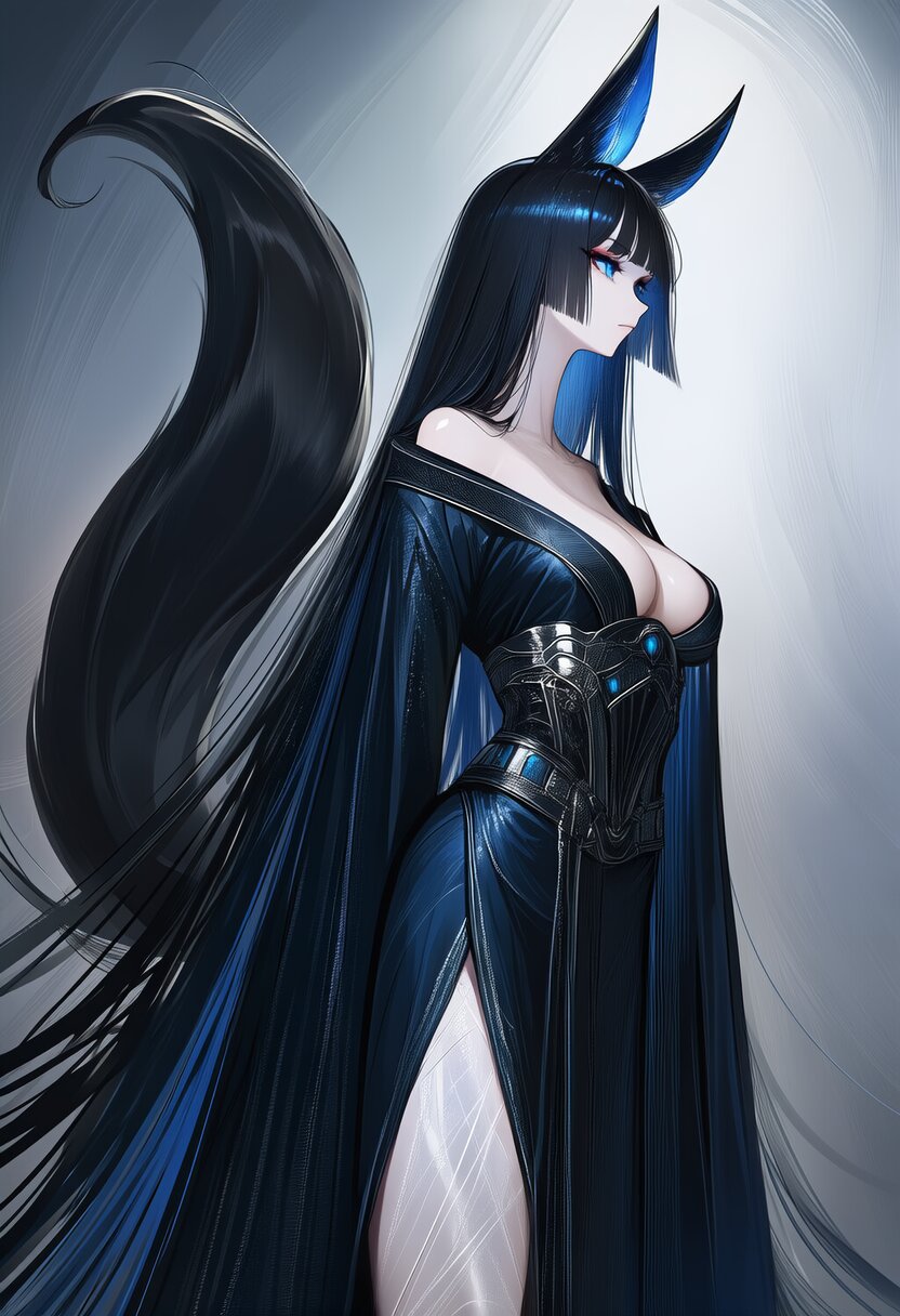 {{{amazing quality}}}, {{{ultra detailed}}}, {{{best quality}}}, {{{high resolution}}}, {{{detaild intricate}}}, {{{absurdres}}}, {{{masterpiece}}}, {{{high quality}}}, {{{very aesthetic}}}, {{{beautiful}}}, perfect anatomy, cowboy shot, beautiful detailed glow, 1girl, fox girl, fox ears, black fox tail, very aesthetic shiny blue eyes, silky smooth skin, very aesthetic silky smooth metallic hair, collarbone, black long hair, straight hair, hime cut, eyelashes, lipgloss, cool, beautiful detailed kimono, depth of field,