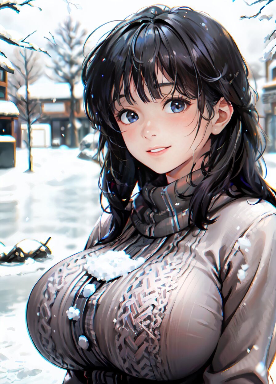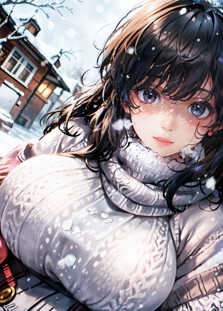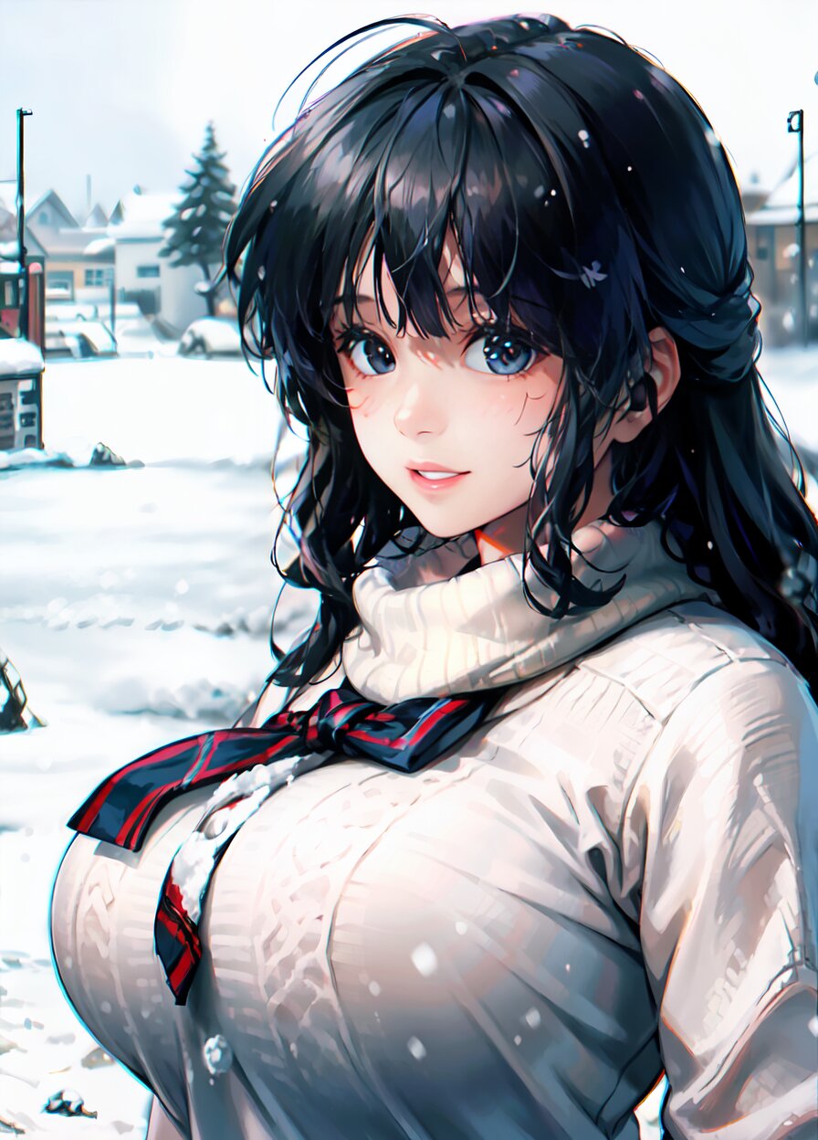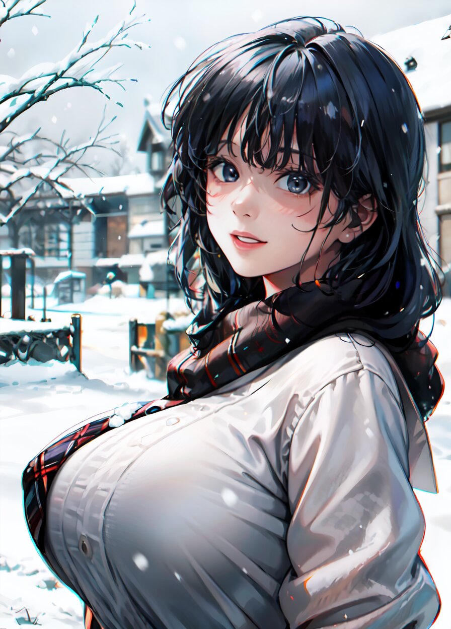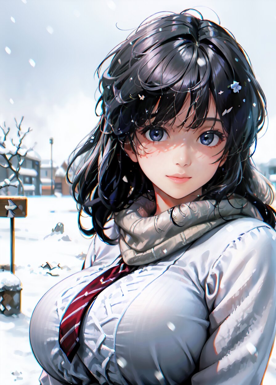 (((shot from front))), (8k, best quality, masterpiece:1), (realistic, photo-realistic:1.4), random pose, (random angle: 1.6), 1girl, 23 years old, primary school teacher, (chubby, huge breasts: 1.4), long hair, beautiful detailed face, (upper body: 1.6), perfect skin, detailed skin texture, (in snowy winter: 1.6), (((at the school ground))), <lora:akina_v01:1>