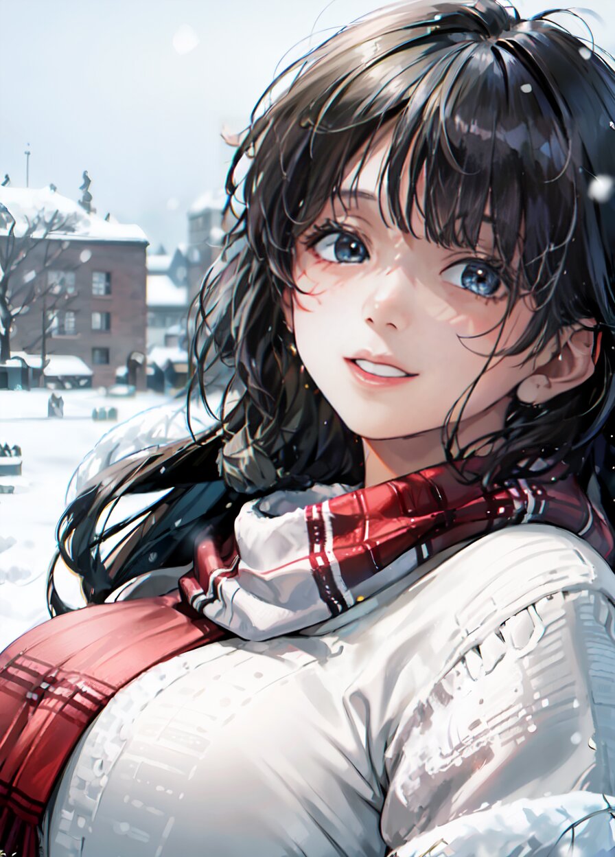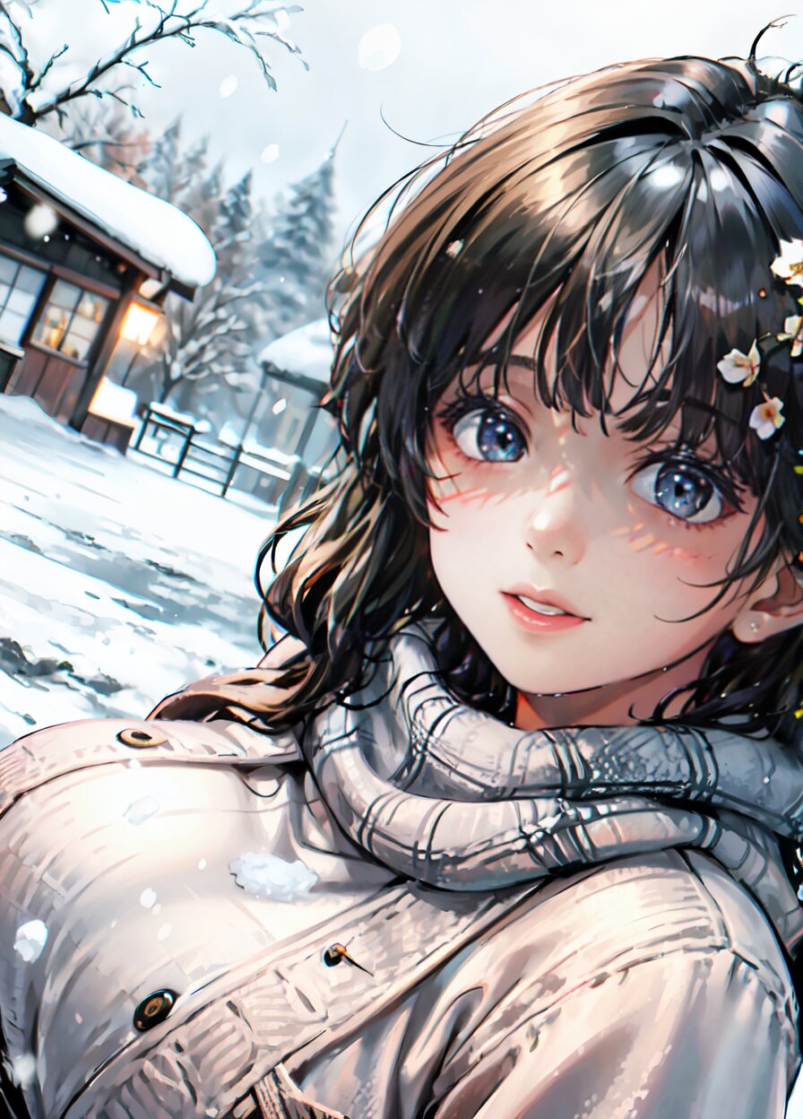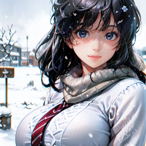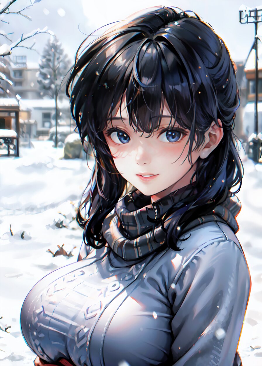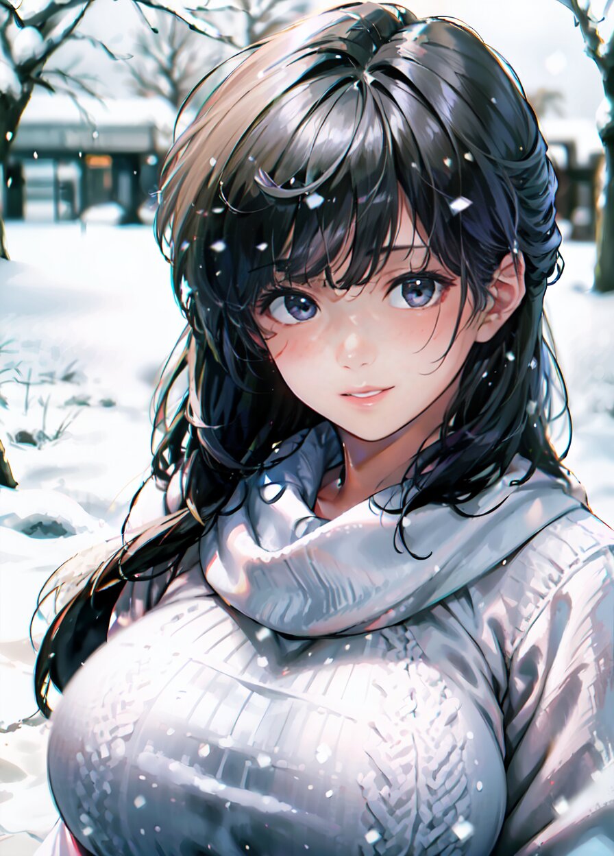 (((shot from front))), (8k, best quality, masterpiece:1), (realistic, photo-realistic:1.4), random pose, (random angle: 1.6), 1girl, 23 years old, primary school teacher, (chubby, huge breasts: 1.4), long hair, beautiful detailed face, (upper body: 1.6), perfect skin, detailed skin texture, (in snowy winter: 1.6), (((at the school ground))), <lora:akina_v01:1>