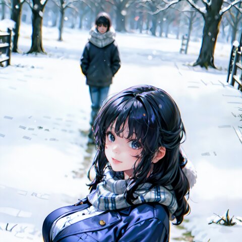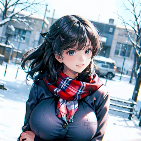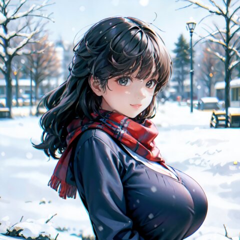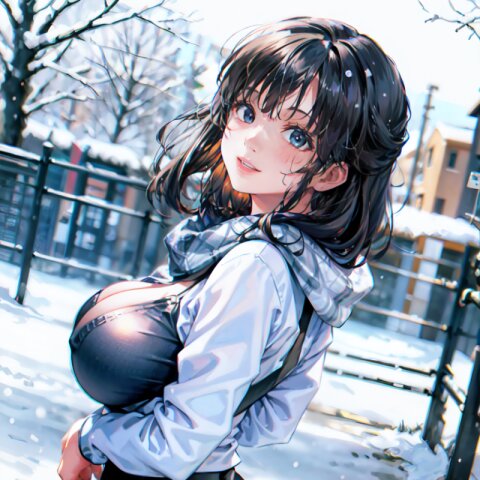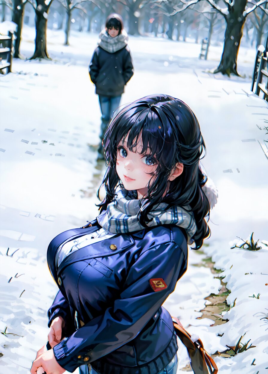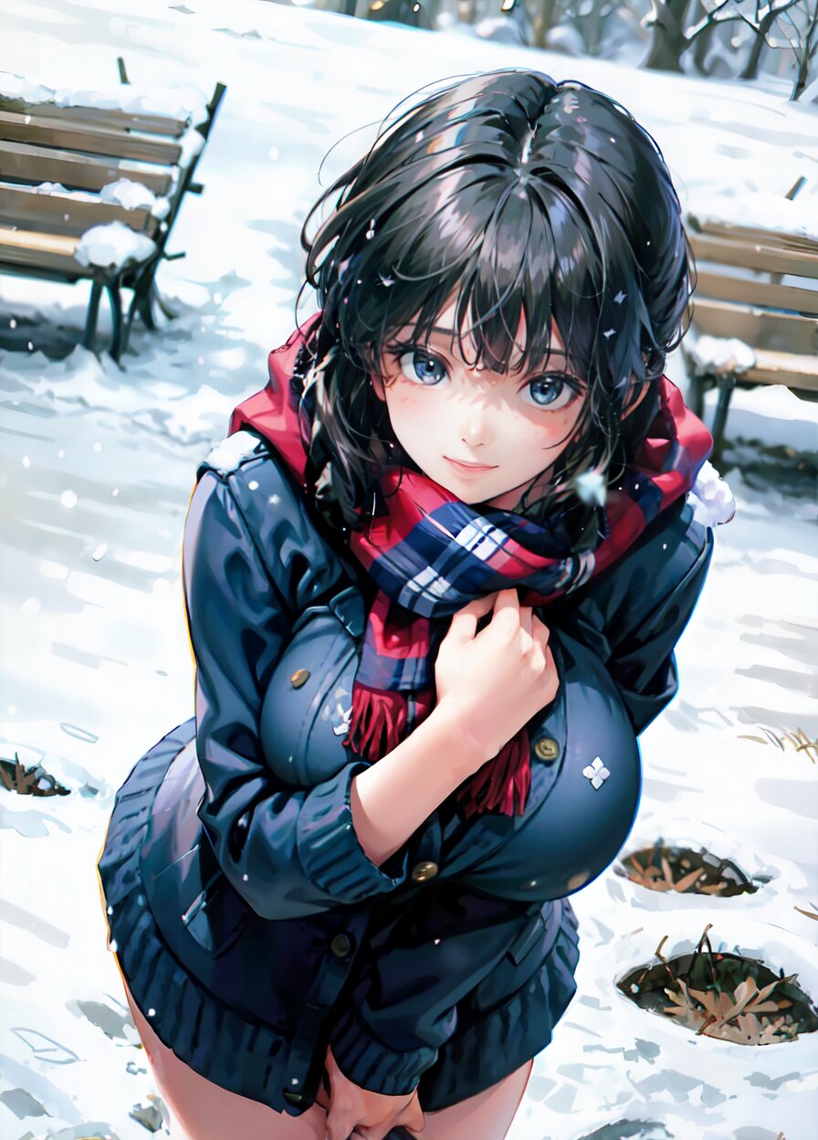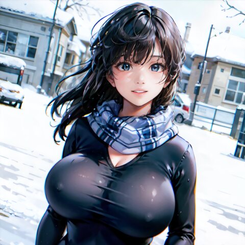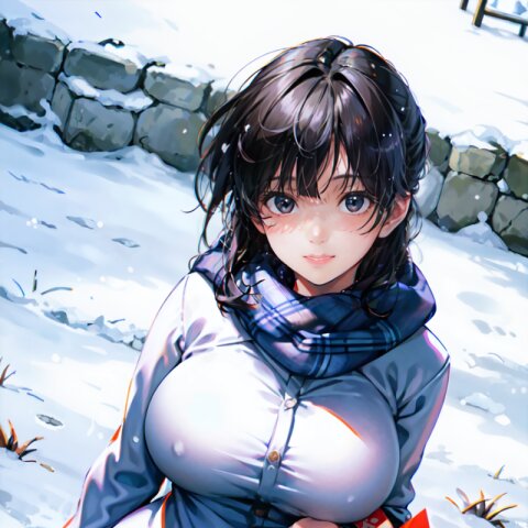 (((shot from front))), (8k, best quality, masterpiece:1), (realistic, photo-realistic:1.4), random pose, (random angle: 1.6), 1girl, 23 years old, primary school teacher, sweater and scarf, fur jacket, (chubby, huge breasts: 1.4), long hair, beautiful detailed face, (cowboy shot: 1.6), perfect skin, detailed skin texture, running, (in snowy winter: 1.6), (((at the school ground))), <lora:akina_v01:1>