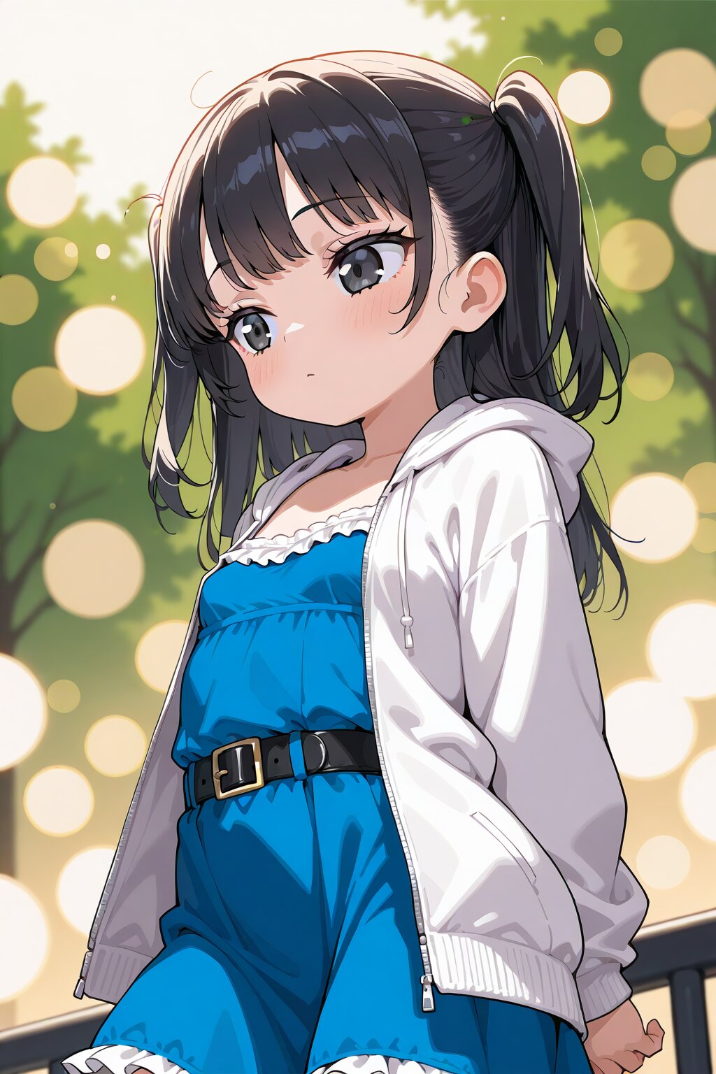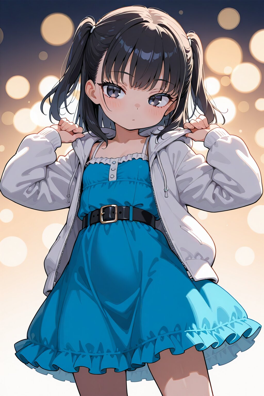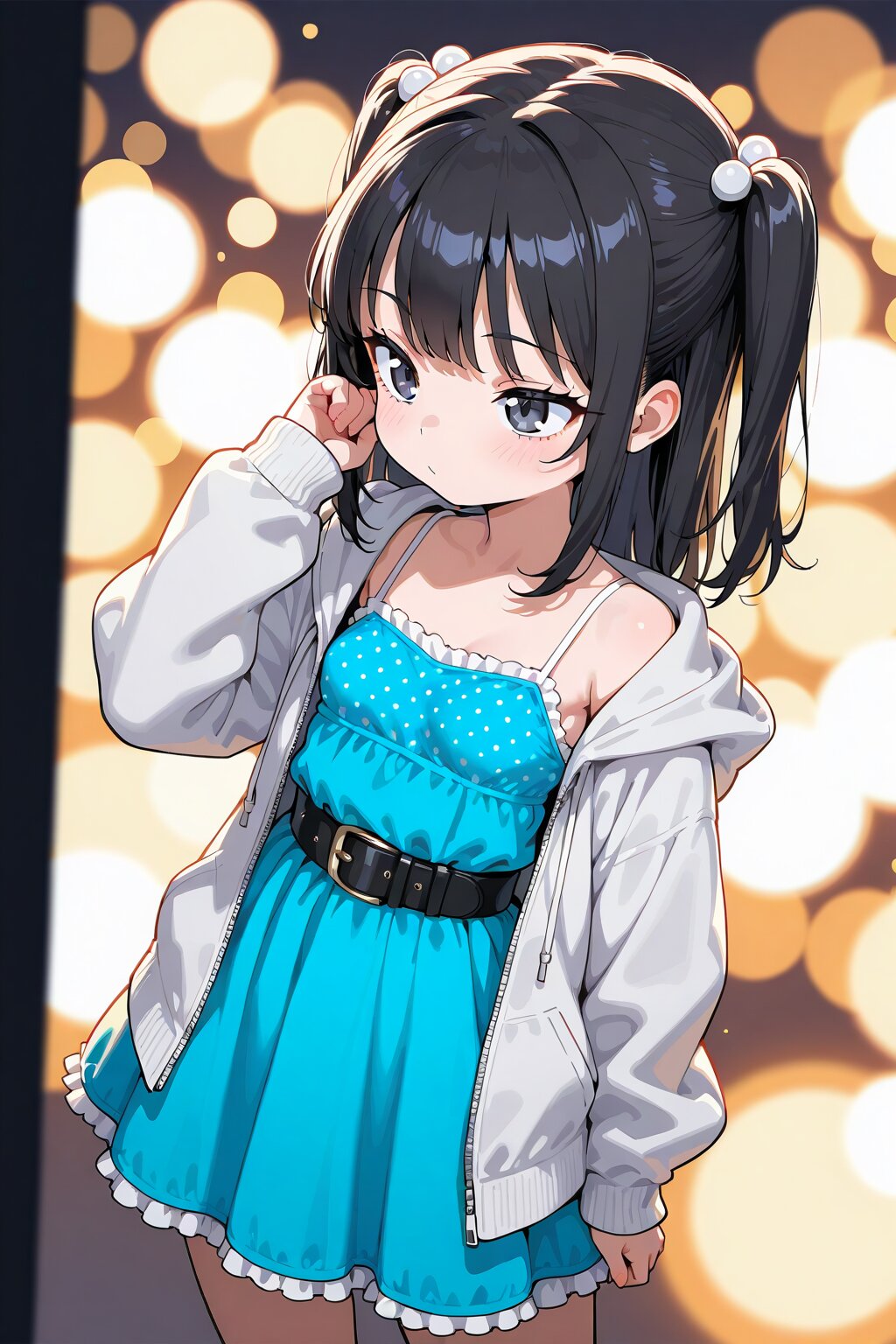 casual,miniskirt,kneehighs,:d,Two Side Up Hair,1girl,loli,bishoujo,mesugaki,underage,black hair,small_breasts,slender_waist,Winter