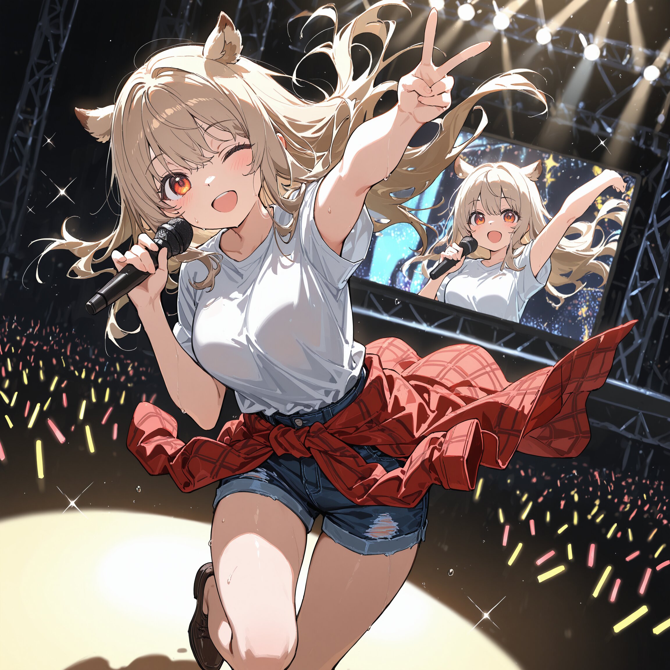 ライブアンコール!! mor1ya 2025/6/21使用したAI Stable Diffusion XL 年齢制限 全年齢 いいね9 シェア #宇猪崎りりあ iromirai様でキャラクターを拝見していて一目惚れしたのでファンアート投稿させていただきます。ライブのアンコールというイメージで作成しました。 プロンプト なし 2件のコメント mor1ya 2025/06/22 01:43 宇猪崎りりあさんコメントありがとうございますー、猪耳って珍しいなーとキャラデザに惹かれました!気に入っていただけたなら幸いです! 宇猪崎りりあ 2025/06/21 23:53 mor1yaさん素敵なファンアートありがとうございます💖一目惚れしてもらえてうれしいです✨ファンアートも躍動感のあるカッコいい一枚になってます🎤 送信 mor1ya 2025年6月より活動開始 35投稿9フォロー16フォロワー Xで投稿したオリジナルを投稿していきます。 フォローする 他の作品 全てを見る 八咫烏ちゃんファンアート 花凛さんファンアート お狐様ファンアート この場所で生きていく 水没都市 お宝探し 天穹の階 水鏡に映る、花と火の音 空と私の輪郭 青く滲む熱 雲海の日 仮面の祝言 NYA ジャケット風 夢と調べの彼方へ 放課後の教室で 虹のむこうの祝祭 崩れる少女 もっと見る