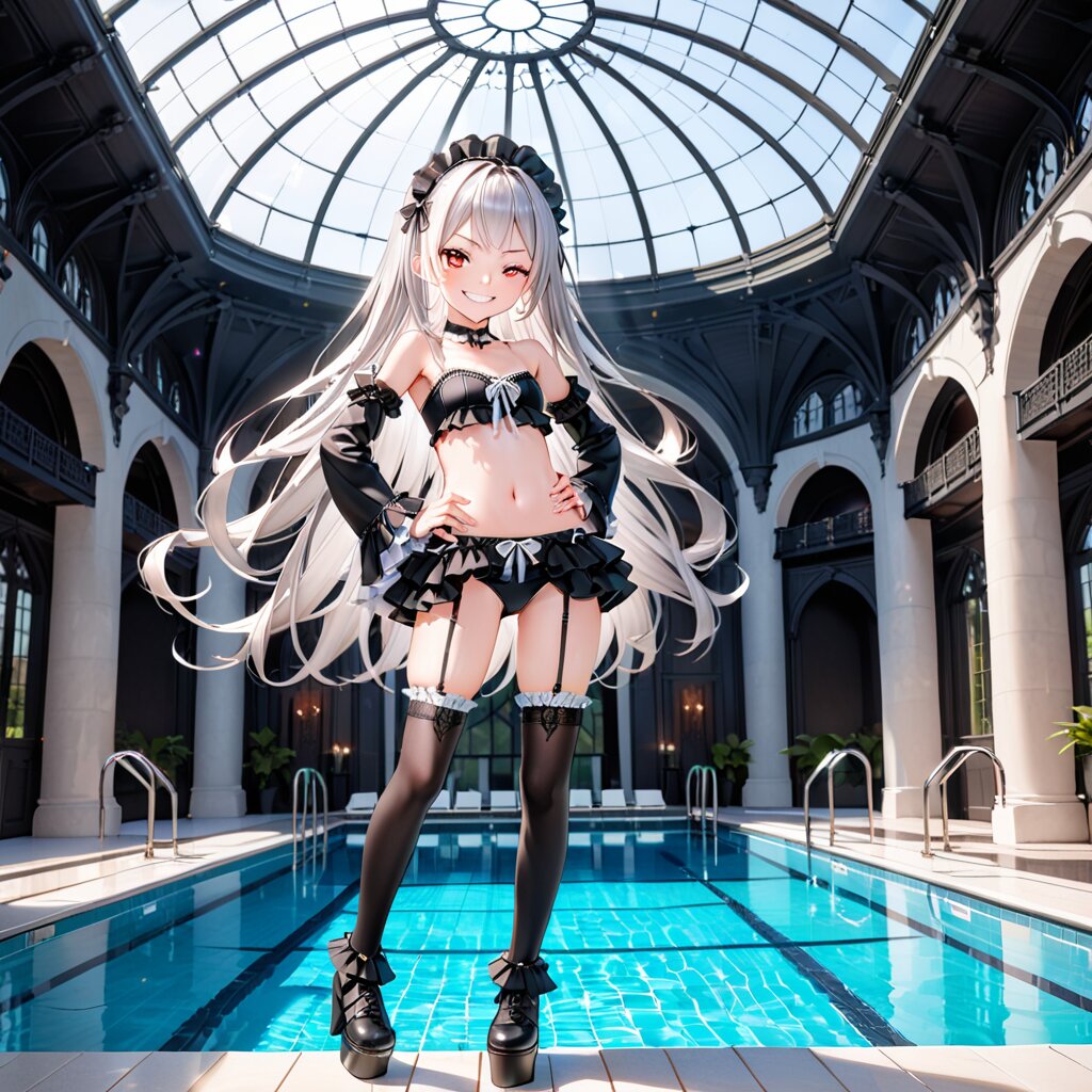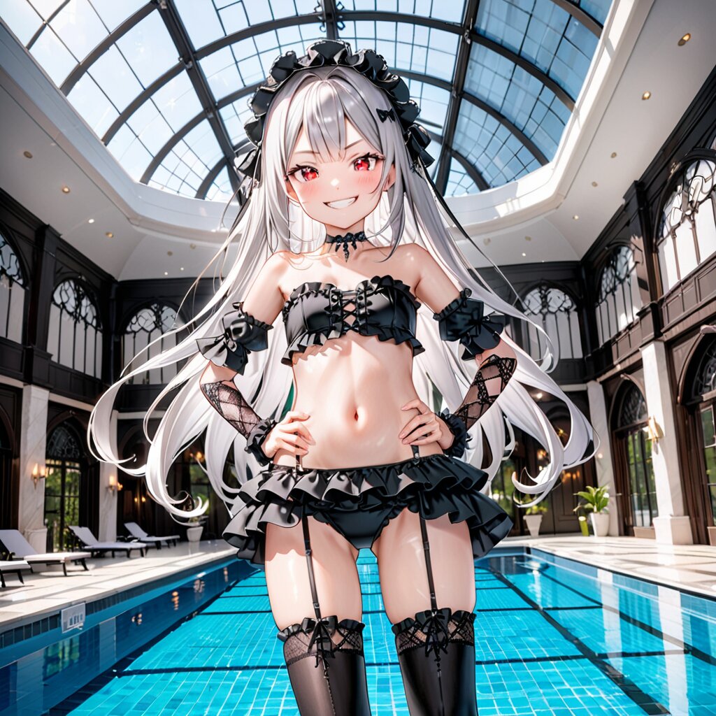 ゴスビキニ水着(ガーターベルト付き)【リメリア】 Forrun 2025/6/24使用したAI Stable Diffusion XL 年齢制限 全年齢 いいね3 シェア #リメリア #銀髪赤目 #水着 #ビキニ #ゴスロリ #ガーターベルト 「ふむ、ありきたりなものではないし、妾の好みにも合う!中々良いではないか♪」ビキニ水着にゴスロリ+フリル+ガーターベルトを追加したという盛りまくりな水着です!(^◇^;) プロンプト なし コメント 送信 Forrun 2023年4月より活動開始 79投稿12フォロー33フォロワー Forrunと申します! TRPGという別趣味に利用する目的でAIイラストを初めて、 イラスト作成単独でも楽しんでます! 現在うちの子4人を中心に色々な衣装を着せたイラストを作っています。また花をテーマにした衣装のプロンプトを作って、来てもらうイベントも開催しています! 宜しければ色々と作品を見て下さい! フォローする 他の作品 全てを見る ハロウィンを楽しむカンナ イケナイチャレンジ!【ユウ】 甘えん坊(?)のチャシャ猫 焼き芋サイコー! アダルティなバーで妖艶な羊と待ち合わせ ウインドウショッピング!【ユウ】 ケモミミ&ツインお団子のメイドさん!【華恋】 リンドウ風ワンピース【リメリア】 忍び込む黒豹【華恋】 氷の女王【まひろ】 秋の公園の散歩 夜空の虹【華恋】 ピンクなゆるふわバニー【ユウ】 緑色AIカーニバル出品作品(夜の草原を歩く緑を纏う少女)【リメリア】 傷ついた人を迎える天使【まひろ】 誘惑のサキュバス パーティ出席前のカンナ ウィンドウショッピング! もっと見る