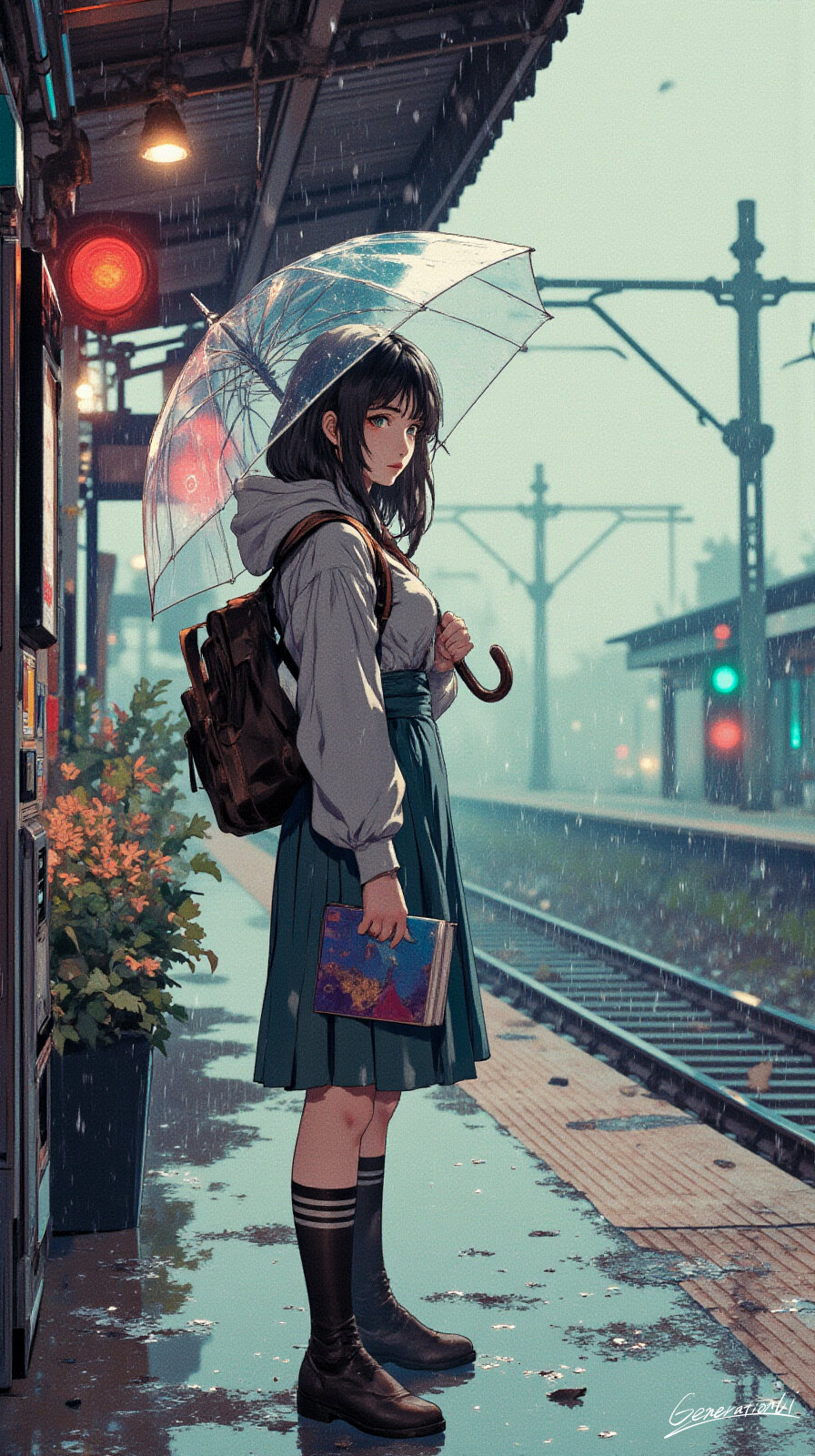 雨色メモリーズ/スマホ壁紙アーカイブ Generation UI 2025/7/3使用したAI FLUX.1 年齢制限 全年齢 いいね3 シェア #駅のホーム #ビニール傘 #雨降り #スマホ壁紙 #物語 #オリジナル 🌧 雨色メモリーズ|物語午後の雨は、記憶のインク。彼女のまつげに宿る雫は、かつて交わした言葉たちの名残。透明な傘の向こう、世界は静かににじみ出し、すべてが水彩画のようにやわらかくなる。本の表紙に描かれた星図は、心の地図。あのとき迷っていた彼女は、もう道に迷わないふりが上手になっただけ。駅の赤い光が止まったままのように、彼女の「さよなら」もまだ進めないままでいる。雨はやがて止むだろう。でも、雨色の記憶は、止まらずに降り続く。 プロンプト なし コメント 送信 Generation UI 2023年1月より活動開始 293投稿0フォロー17フォロワー ✨心ときめくスマホ壁紙をAIイラストでお届けします✨ 眺めているだけで、ふと気持ちが動くようなものを目指しています💕 【受賞歴】 ・世界最大級の AI画像生成プラットフォーム Civitai 主催の国際コンテストで受賞 (グレートハロウィンコンテスト2025Gothic Glamour画像部門1位https://civitai.com/articles/22348) フォローする 他の作品 全てを見る レンガ色の午後、風がやさしく通り抜ける街/スマホ壁紙アーカイブ 世界がオレンジに染まるとき/スマホ壁紙アーカイブ ボトルの中を走る小さな鉄道 / スマホ壁紙アーカイブ リビングに舞い降りた空のワンダーランド/スマホ壁紙アーカイブ 灰色の世界でひとつ息をする/スマホ壁紙アーカイブ 荷物より大きな夢を抱えて/スマホ壁紙アーカイブ 極赤の世界にひとつの祈り/スマホ壁紙アーカイブ 石橋のアーチが描く秋の交響曲/スマホ壁紙アーカイブ この雨を切り裂け!/スマホ壁紙アーカイブ 美しき弓、咲き乱れる世界/スマホ壁紙アーカイブ 貴方と過ごす幸せテーブル/スマホ壁紙アーカイブ 読書会はまだ始まらない/スマホ壁紙アーカイブ 物語が動き出す山岳メトロポリス/スマホ壁紙アーカイブ 戦火を纏うエレガンス/スマホ壁紙アーカイブ きのこライトが灯す秘密の谷/スマホ壁紙アーカイブ 木工職人の静かな集中/スマホ壁紙アーカイブ 書棚に挟まれた異世界行き/スマホ壁紙アーカイブ ノスタルジック秋の風景[5]/スマホ壁紙アーカイブ もっと見る