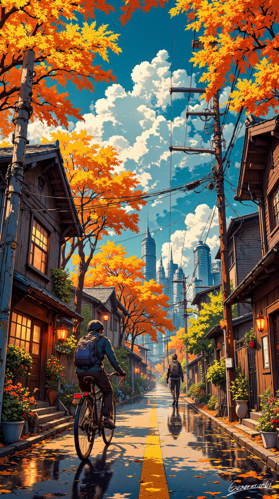 この道の先に、きっと/スマホ壁紙アーカイブ Generation UI 2025/7/4使用したAI FLUX.1 年齢制限 全年齢 いいね3 シェア #ノスタルジック #レトロと未来 #入道雲 #スマホ壁紙 #物語 #オリジナル 【この道の先に、きっと】背中に陽だまりを感じながら、自転車をこぐ少年はまだ見ぬ何かを探していた。歩く人も、風に揺れるオレンジの葉も、静かに彼の進む道を祝福しているようだった。古びた木造の家々と、はるか遠くにそびえる未来の塔。そのはざまを縫うようにして続くこの道の先に──きっと、自分だけの「何か」が待っていると、信じていた。それが夢か、それとも日常かはまだ分からない。でも、ペダルを踏むたび、心は少しずつ軽くなっていった。 プロンプト なし コメント 送信 Generation UI 2023年1月より活動開始 293投稿0フォロー17フォロワー ✨心ときめくスマホ壁紙をAIイラストでお届けします✨ 眺めているだけで、ふと気持ちが動くようなものを目指しています💕 【受賞歴】 ・世界最大級の AI画像生成プラットフォーム Civitai 主催の国際コンテストで受賞 (グレートハロウィンコンテスト2025Gothic Glamour画像部門1位https://civitai.com/articles/22348) フォローする 他の作品 全てを見る レンガ色の午後、風がやさしく通り抜ける街/スマホ壁紙アーカイブ 世界がオレンジに染まるとき/スマホ壁紙アーカイブ ボトルの中を走る小さな鉄道 / スマホ壁紙アーカイブ リビングに舞い降りた空のワンダーランド/スマホ壁紙アーカイブ 灰色の世界でひとつ息をする/スマホ壁紙アーカイブ 荷物より大きな夢を抱えて/スマホ壁紙アーカイブ 極赤の世界にひとつの祈り/スマホ壁紙アーカイブ 石橋のアーチが描く秋の交響曲/スマホ壁紙アーカイブ この雨を切り裂け!/スマホ壁紙アーカイブ 美しき弓、咲き乱れる世界/スマホ壁紙アーカイブ 貴方と過ごす幸せテーブル/スマホ壁紙アーカイブ 読書会はまだ始まらない/スマホ壁紙アーカイブ 物語が動き出す山岳メトロポリス/スマホ壁紙アーカイブ 戦火を纏うエレガンス/スマホ壁紙アーカイブ きのこライトが灯す秘密の谷/スマホ壁紙アーカイブ 木工職人の静かな集中/スマホ壁紙アーカイブ 書棚に挟まれた異世界行き/スマホ壁紙アーカイブ ノスタルジック秋の風景[5]/スマホ壁紙アーカイブ もっと見る