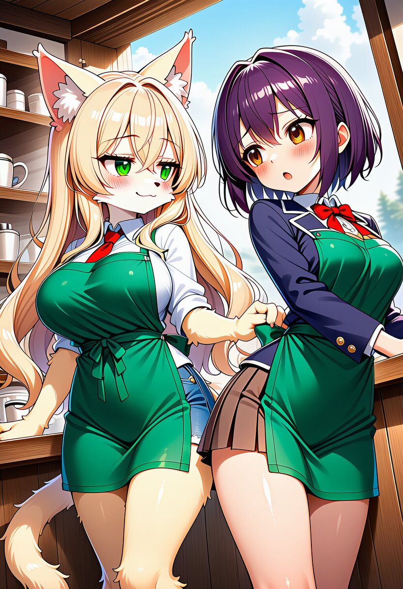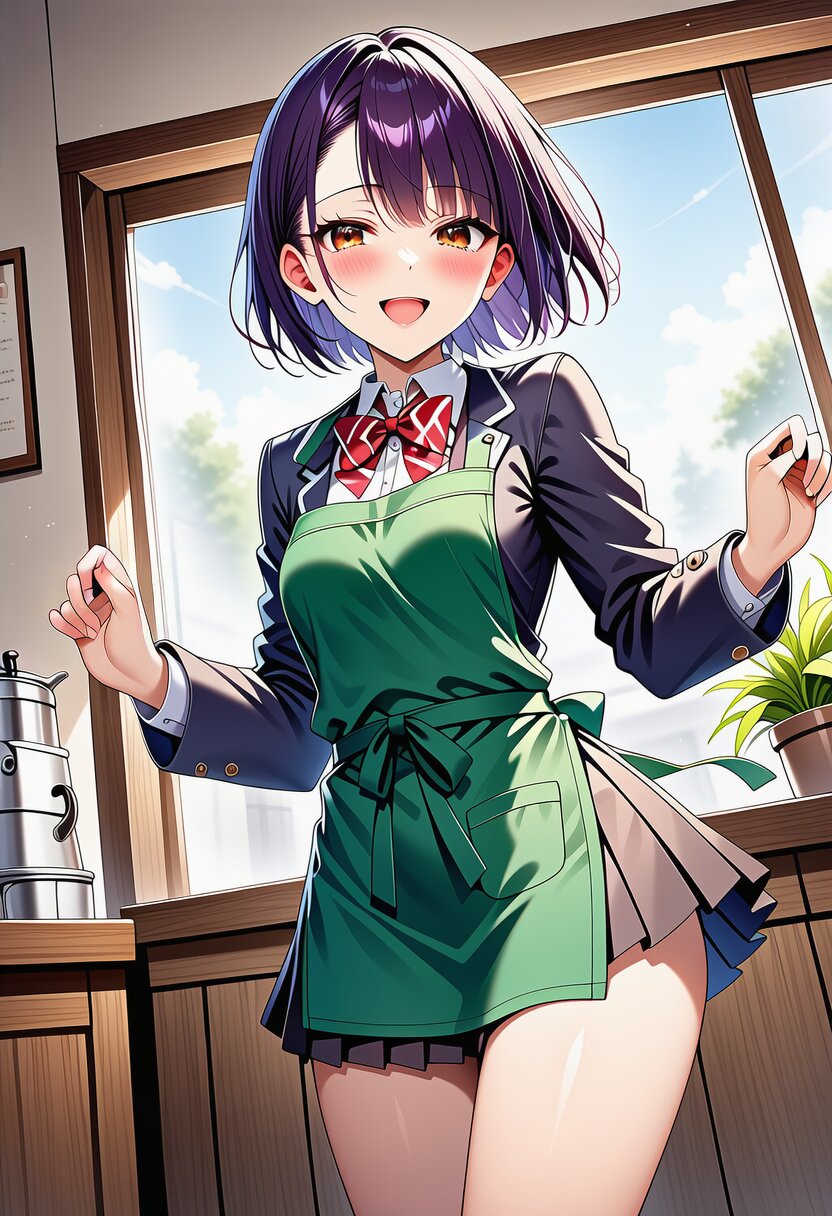 ai-generated, year 2024, anime style, 1girl, solo, midday, indoor, in coffee shop, dynamic angle, masterpiece, best quality, ultra detailed, perfect fingers, high resolution, absurdres, perfect anotomy, detailed background, unity 8k wallpaper, location, very aesthetic, masterpiece, no text