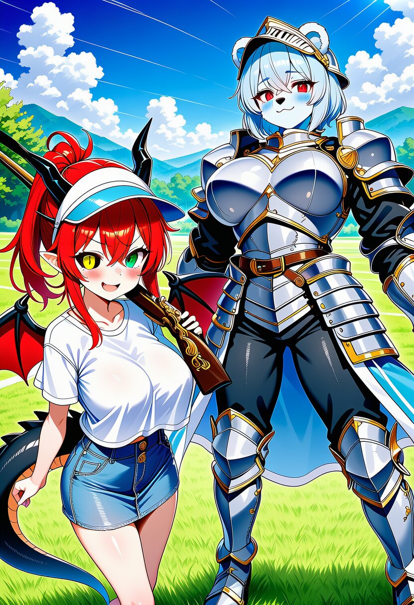 ai-generated, year 2024, anime style, 2girl, midday, indoor, 1.0::in grassfield::, dynamic angle, masterpiece, best quality, ultra detailed, perfect fingers, high resolution, absurdres, perfect anotomy, detailed background, unity 8k wallpaper, very aesthetic, masterpiece, no text