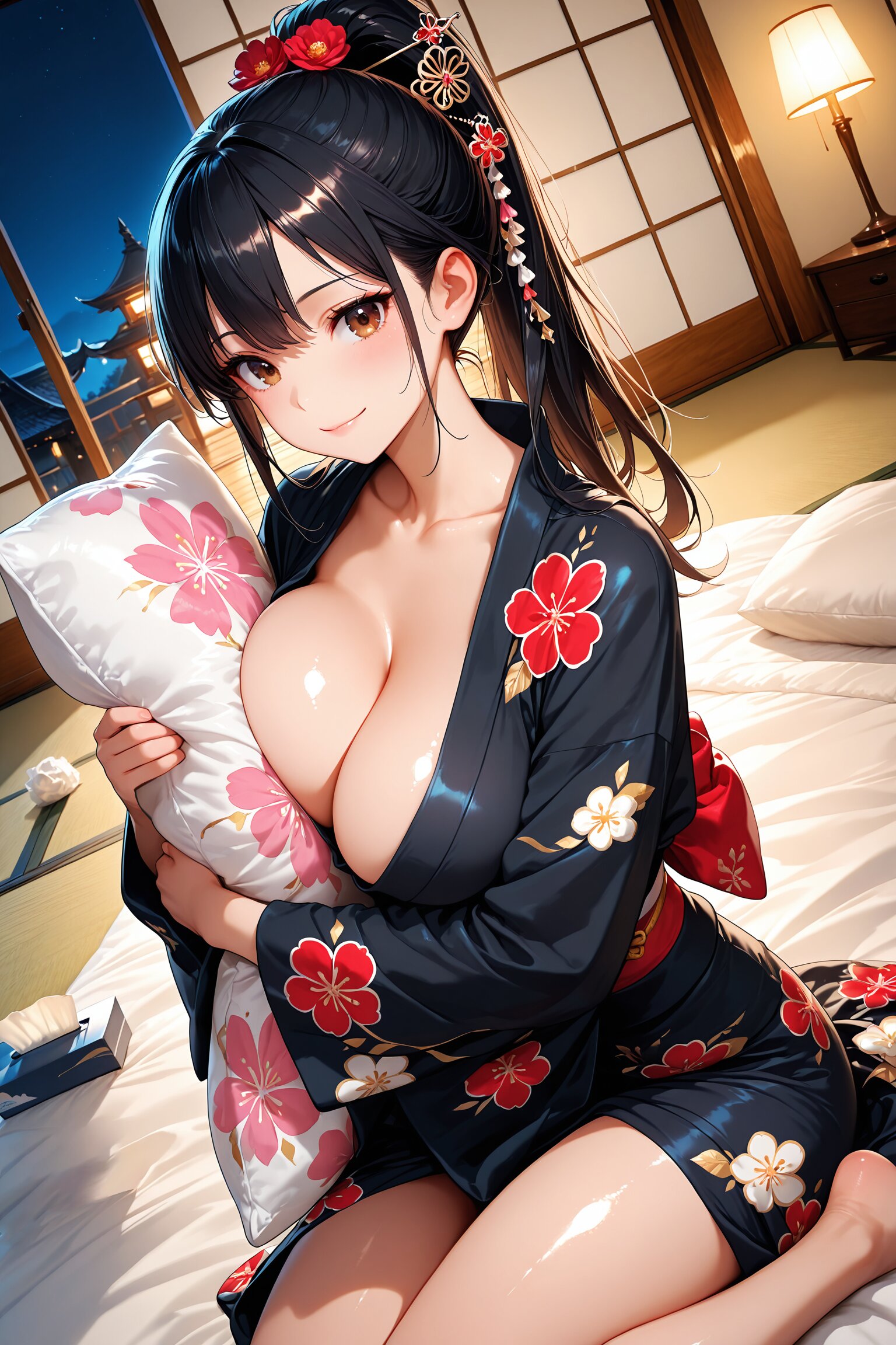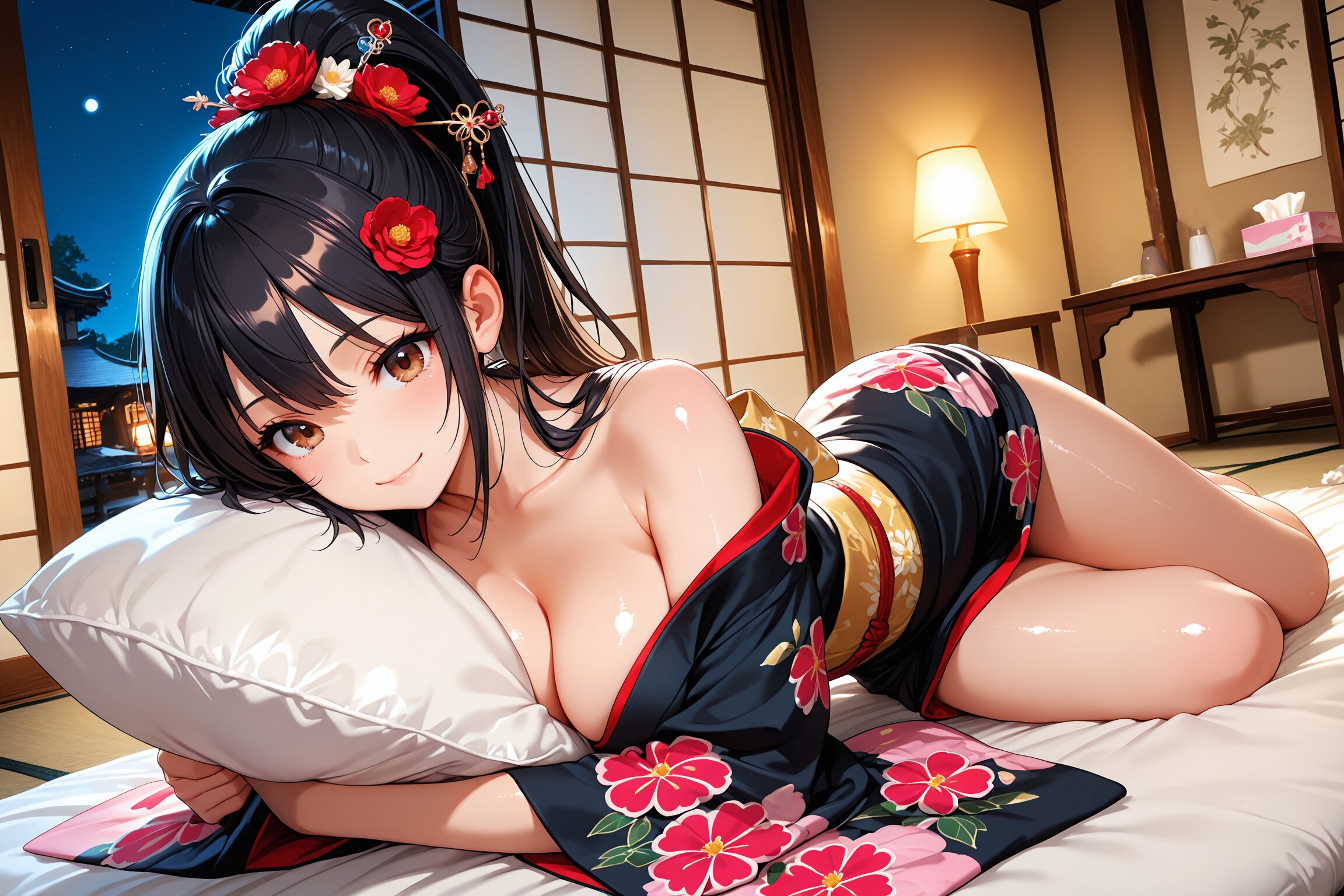 部屋は、畳の香が落ち着く和室。ふかふかの布団がすでに敷かれ、隣には小さな香台に炊いた“月草の香”がほのかに煙っていた。