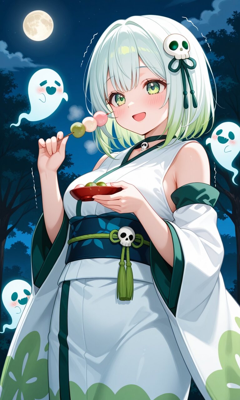お団子は意識しました☺️白髪ロングに白粉だから本物のお化けを意識してて可愛いです🙆コメントありがとうございました☺️