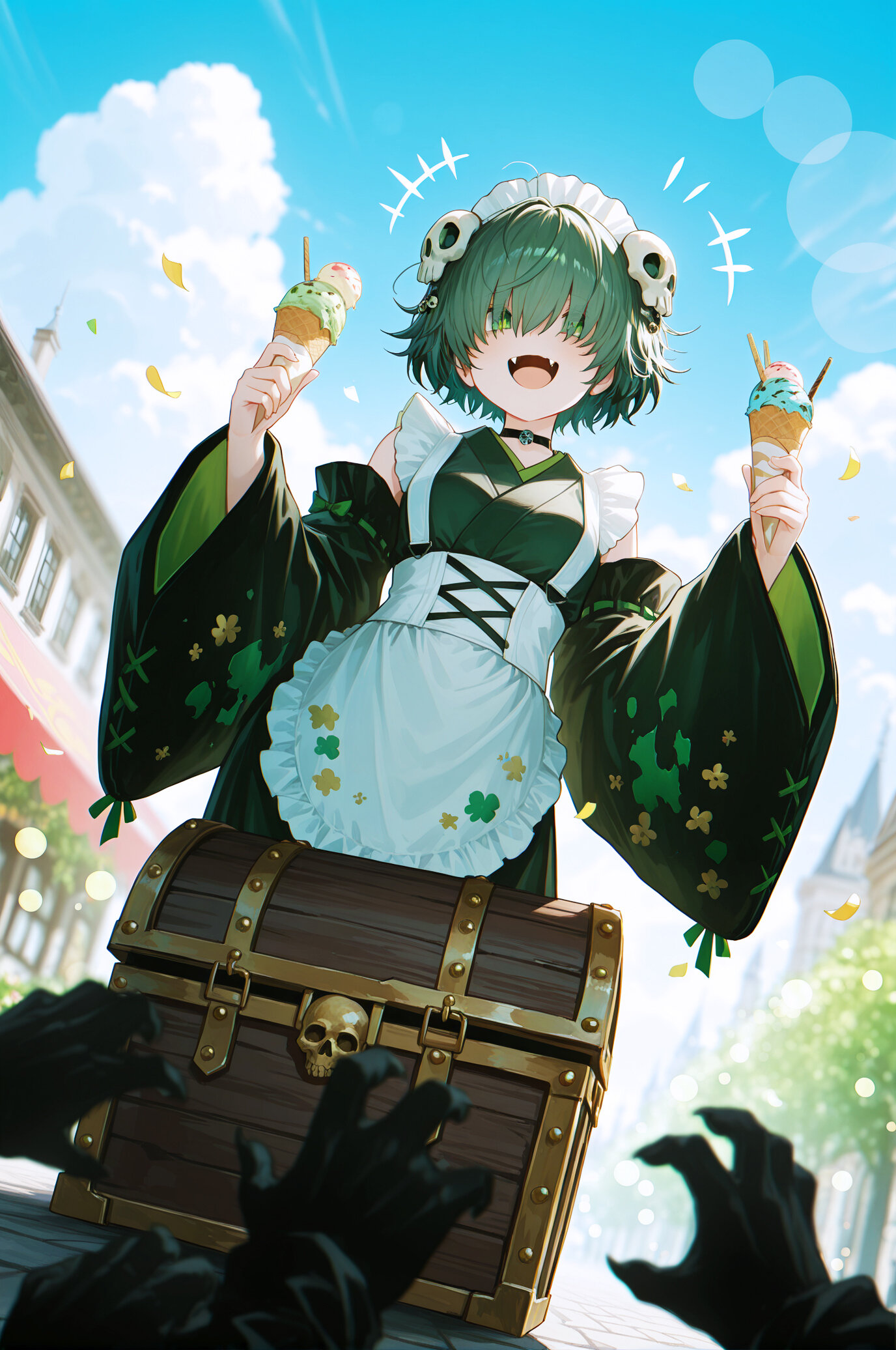 しかも、お花柄プリントの和メイド服に、アイスクリーム二刀流で大満足なミミックちゃんをありがとうございました~(*´▽`*)