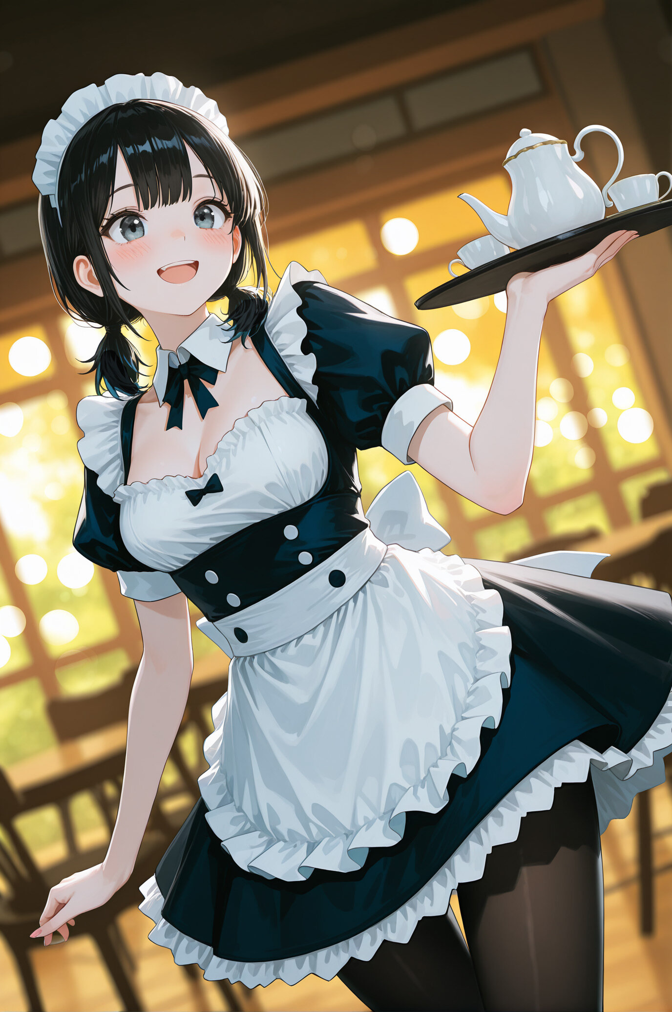 バイト先のカフェでお給仕するショコラちゃんをイメージしてみました(*´ω`*)💓