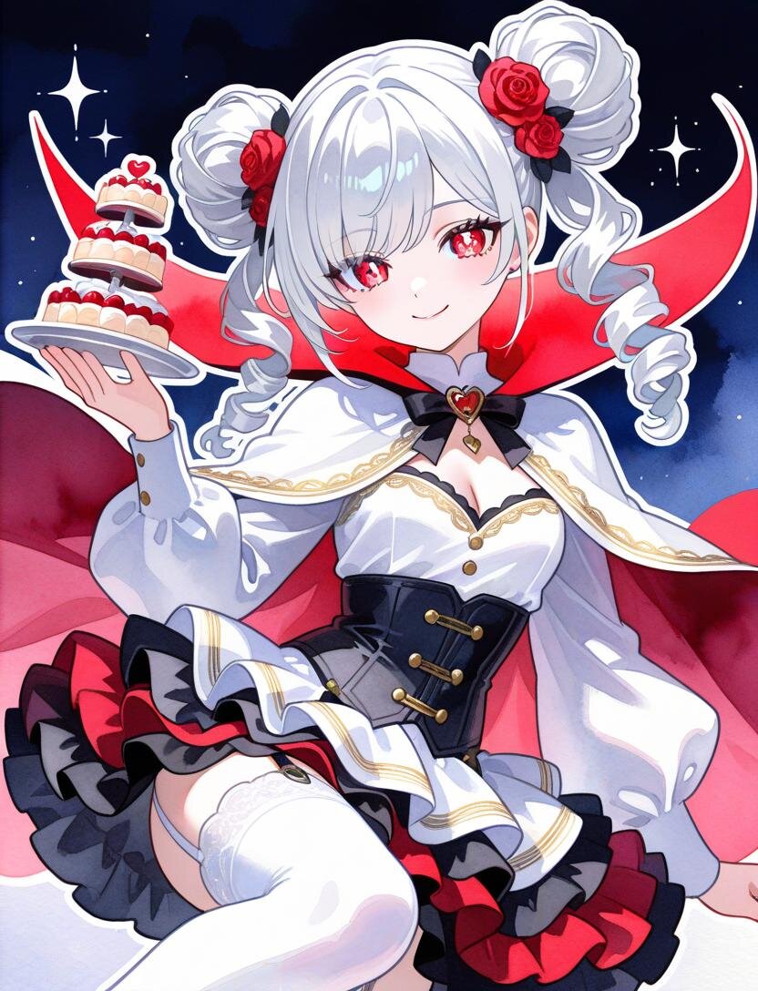 ベルちゃんお菓子作りが特技だからなのかプロンプトにお菓子のことは入れてなかったのに、あの1枚だけはケーキを一緒に出してくれたんです奇跡の一枚です🥹✨