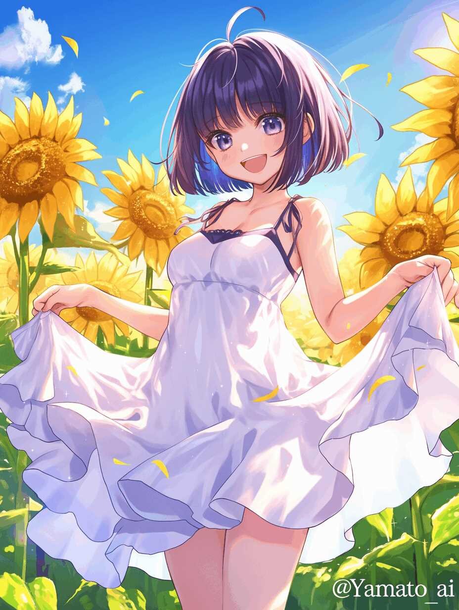 ファンアートありがとう😉👍️🎶ひまわり畑だ元気一杯だね👍️nijijourneyすごいなぁここまで色合い出せないようちの良く使うPixAIでは✨
