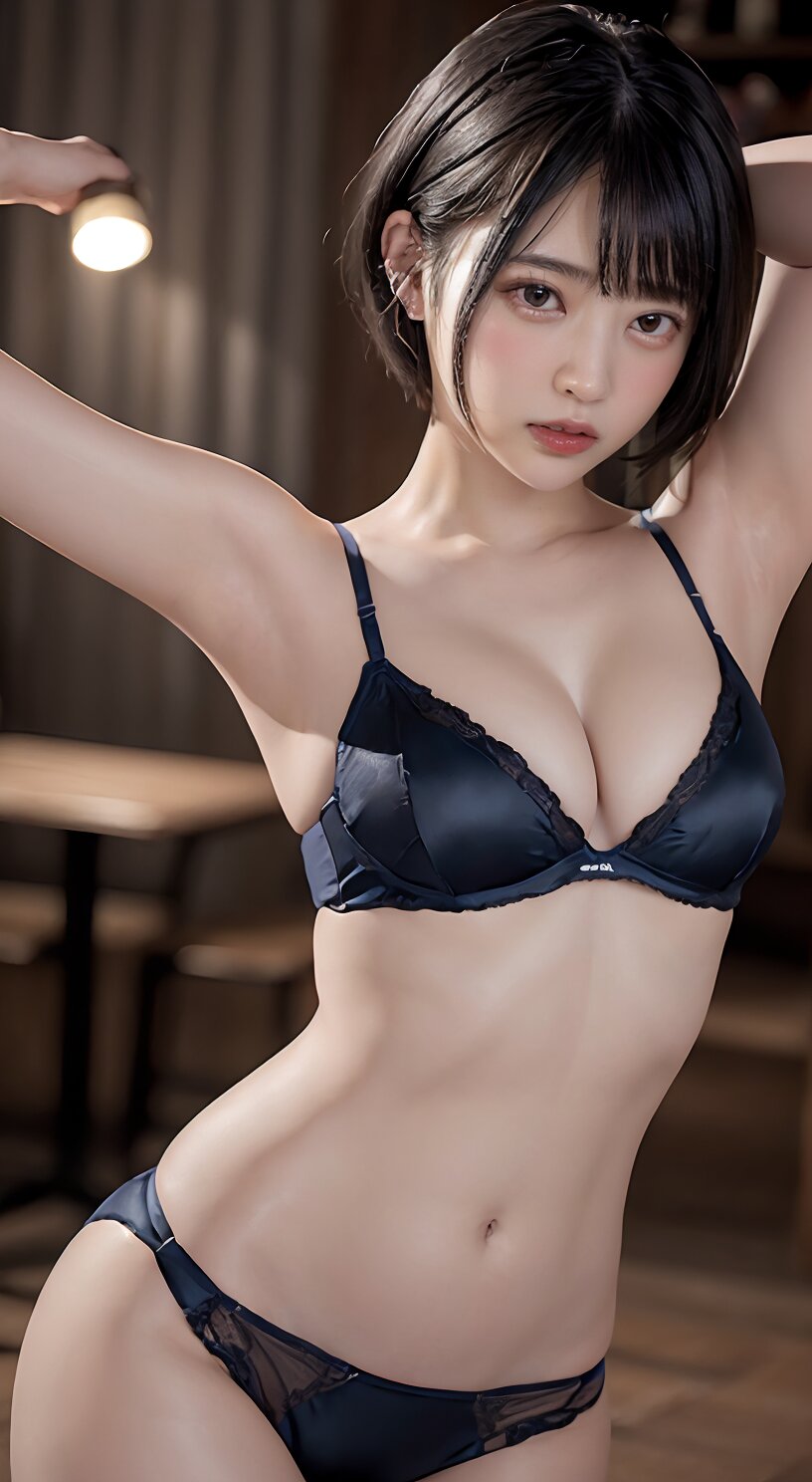 (full body, sexy posing, random angle: 1.6), (8k, best quality, masterpiece:1.4), (realistic, photo-realistic:1.6), HDR, (incredibly absurdres:1.2), (vibrant color:1.2), ultra-detailed, 1girl, solo, 18years old, boyish, dance queen, (slender, medium breasts: 1.8), (very short hair: 1.8), perfect body, highly detailed, shiny hair, looking at viewer, (Camisola Lingerie Nighty Wedding Silk Dress, red panties: 1.2), (lifting the breasts with arms: 1.2), in the night pub, <lora:hibi_v01:0.8>
