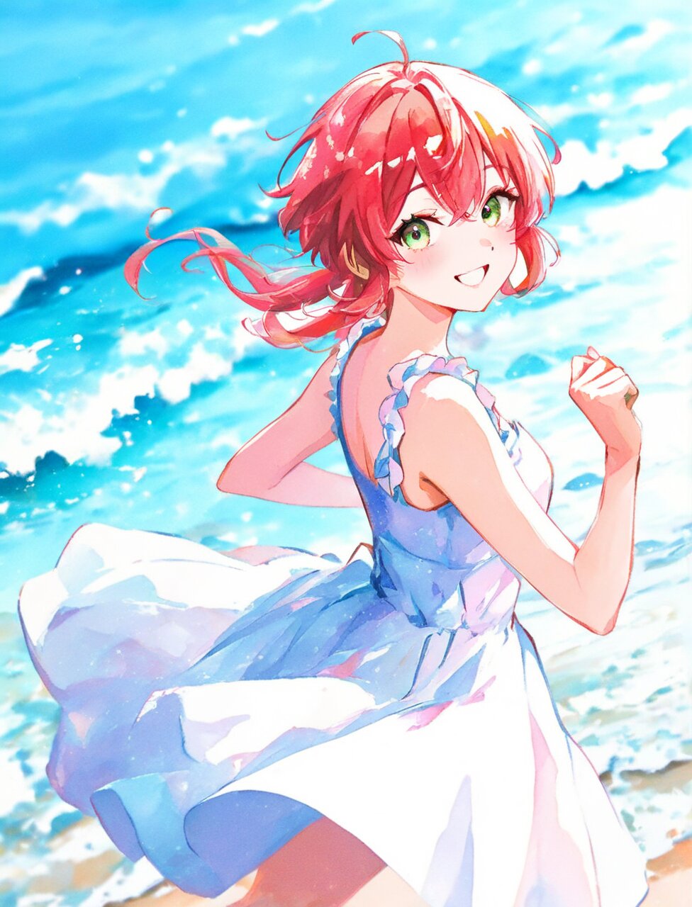 潮風に揺れるドレス 京叶宙千 2025/7/28使用したAI その他 年齢制限 全年齢 いいね5 シェア #夏コーデ #女の子 #海 #サマードレス #dress #赤髪 どこまでも広がる青い空と、きらめくエメラルドの海。白い砂浜を駆ける少女の笑顔は、まるで夏の陽射しをそのまま閉じ込めたよう。鮮やかな赤色の髪は、風に舞い上がり、喜びを歌う旋律のよう。透き通るような白いワンピースは、波打ち際に咲く、儚い泡の花。緑色の瞳は、希望に満ち溢れ、未来への期待を映し出す。潮風が運ぶのは、新しい季節の始まりを告げる、甘い予感。波の音は、少女の心のリズムと共鳴し、夏の日の夢を、優しく包み込む。一瞬の煌めきを捉えた、永遠に色褪せない、夏の肖像。 プロンプト なし コメント 送信 京叶宙千 2023年6月より活動開始 230投稿53フォロー53フォロワー 好きなことをして生きています。全て上手くいってる。 フォローする 他の作品 全てを見る カラフル衝動!ピースサインとハッピー・バイブス! ハジける! 限界突破カラフル☆パワー 私の脳内は、ネオンカラーのビッグバン! 見て見て!このメガネが、私のハッピーを増幅中! ピース!✌️ 私の『最高!』、キミにも届いてる? 見て!私の『スキ』を全部集めた、この世界! ねぇ、この夏、私に夢中になってくれる? 眼鏡とドットワンピース 鮮やかな色の魔法!花冠とポップな世界で踊る私 ネオン・ガーデンの女王(クイーン):サイケデリック・デイドリーム 色と光の乱舞:ポップ・キャンディ・ガール ネオ・ハーモニーの学園祭 ネオン彩る 幻花の学舎 ネオン・サーキットの、最速のヴィーナス ネオン・シティの孤独なカラー 桜色の予感と、青いハイライト ネオンの丘から、見つめる未来 ネオンとキミと、駆け抜ける夏 もっと見る