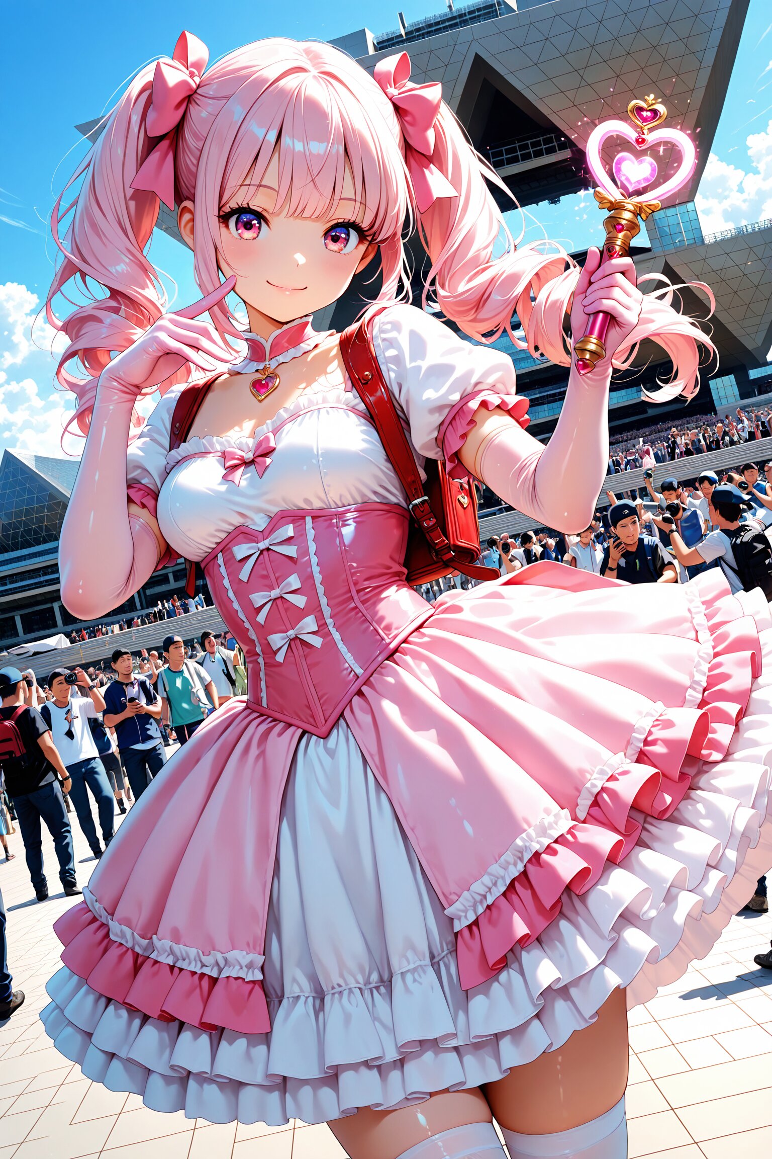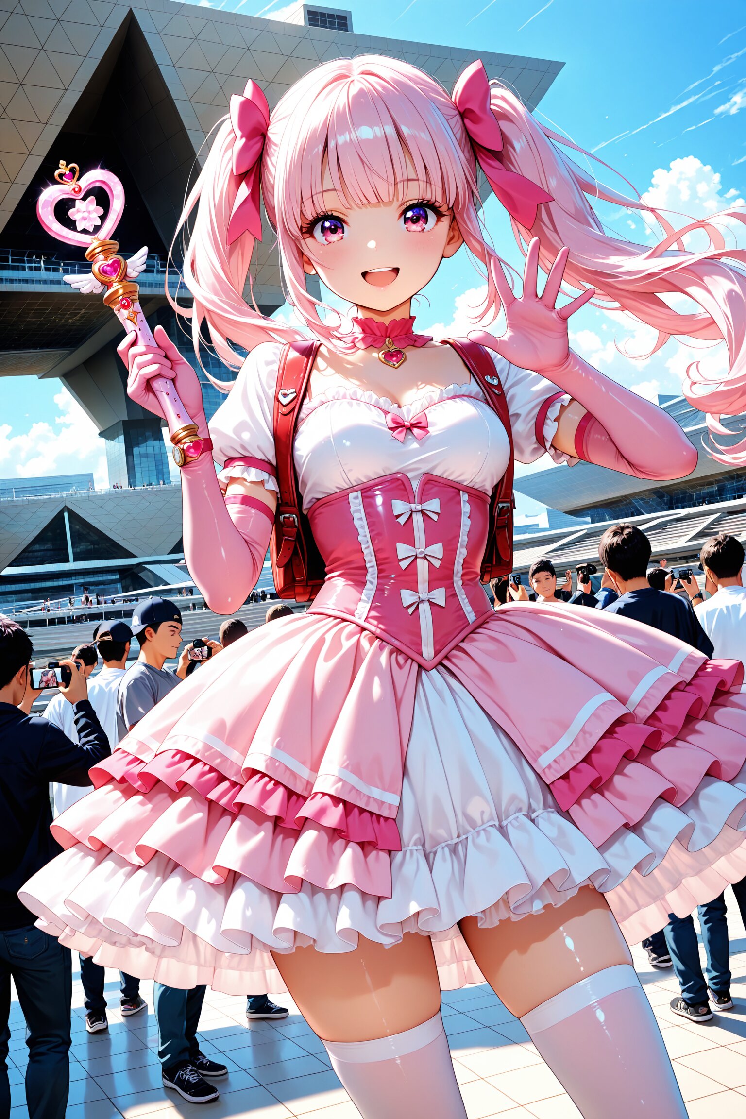 ふわふわのツインテ、ハート型のロッド、レースひらひらのスカートと魔法のランドセル……全部うららの手作りなのだっ!