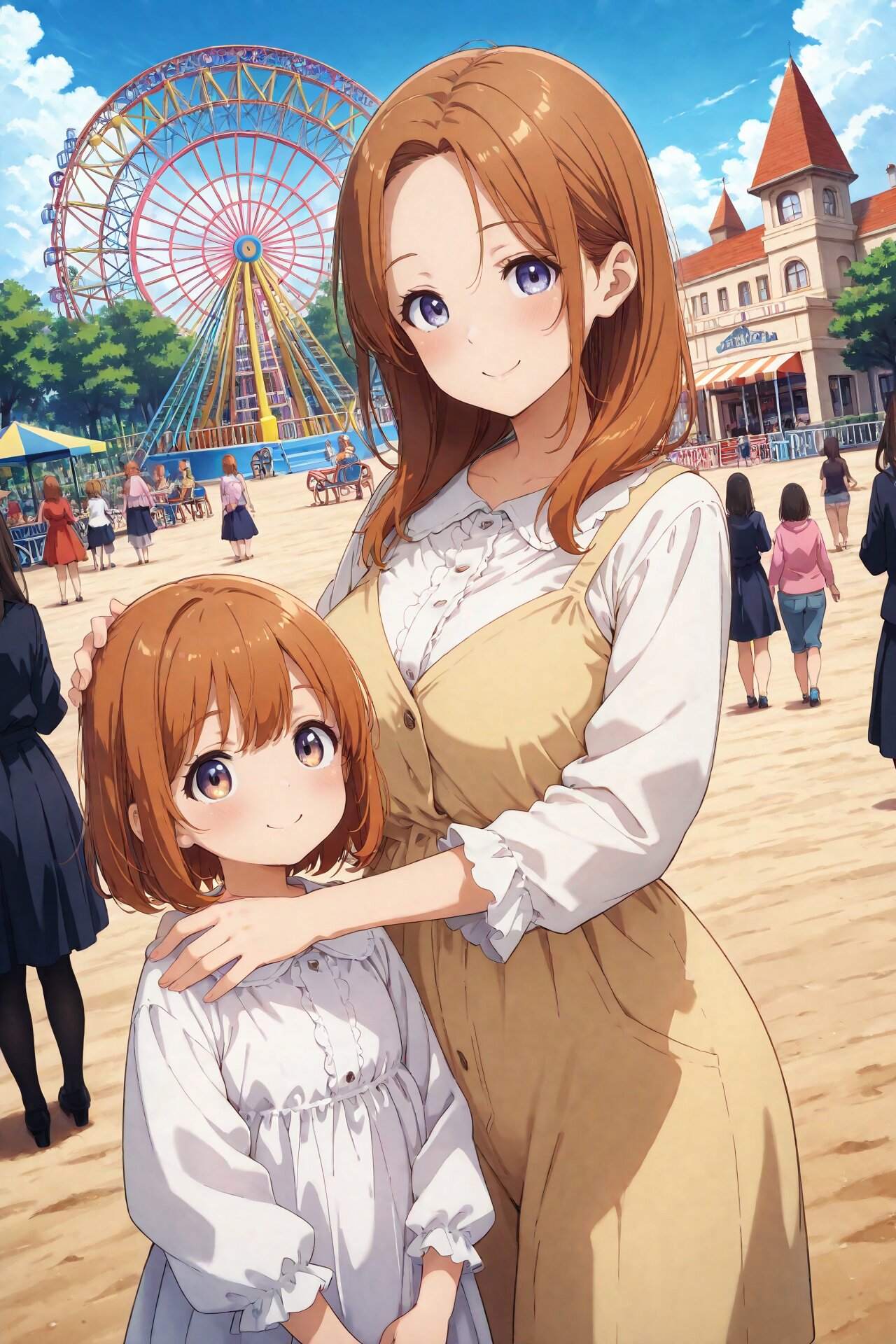 masterpiece, best_quality, amusement park, smile, Aunt,