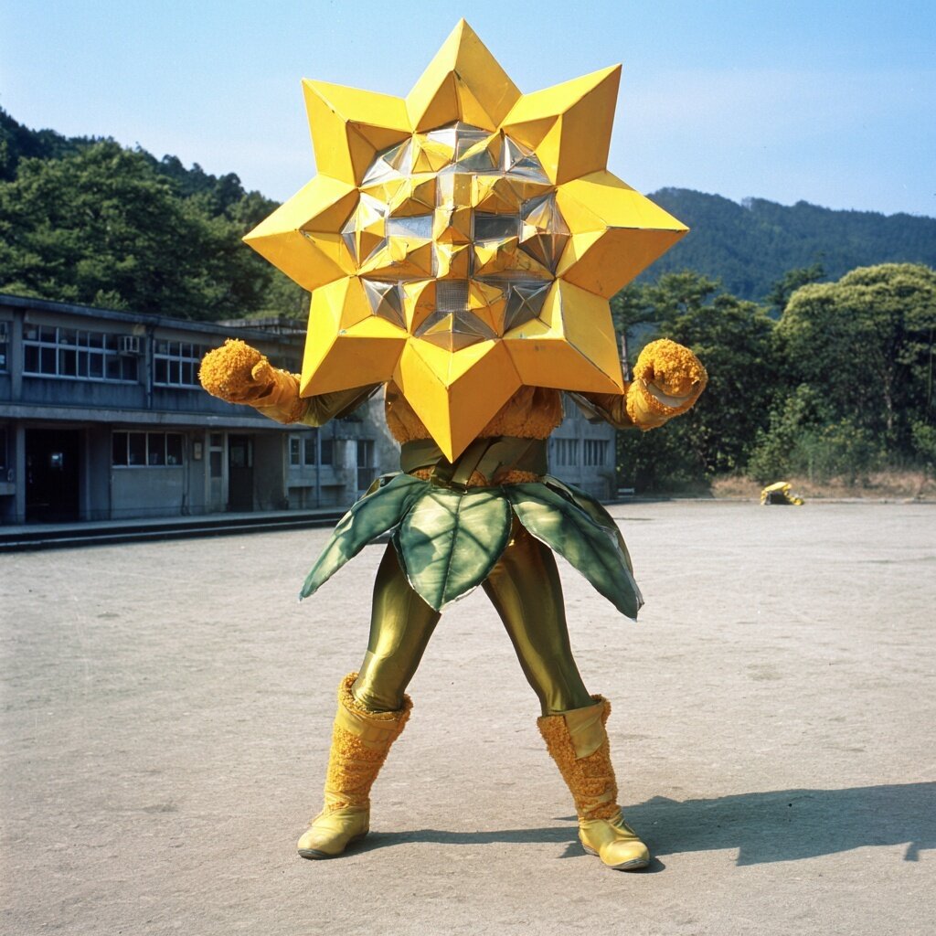 ヒマワリ怪人 YuZu 2025/8/2使用したAI Midjourney 年齢制限 全年齢 いいね3 シェア #特撮 #怪人 #オリジナル プロンプト なし コメント 送信 YuZu 2025年3月より活動開始 18投稿2フォロー7フォロワー Midjourneyで特撮ヒーロー番組に出てきそうなオリジナル怪人を作っています。 フォローする 他の作品 全てを見る 工事現場怪人 野菜怪人 野菜怪人 メカエイ怪人 シャチホコ怪人 コーヒー怪人 猫怪人 猫怪人 ギフト怪人 スロット怪人 カニロボット怪人 ロープ怪人 蜂の巣怪人 スイカ怪人 サーフボード怪人 悪魔怪人 ハープ奏者怪人
