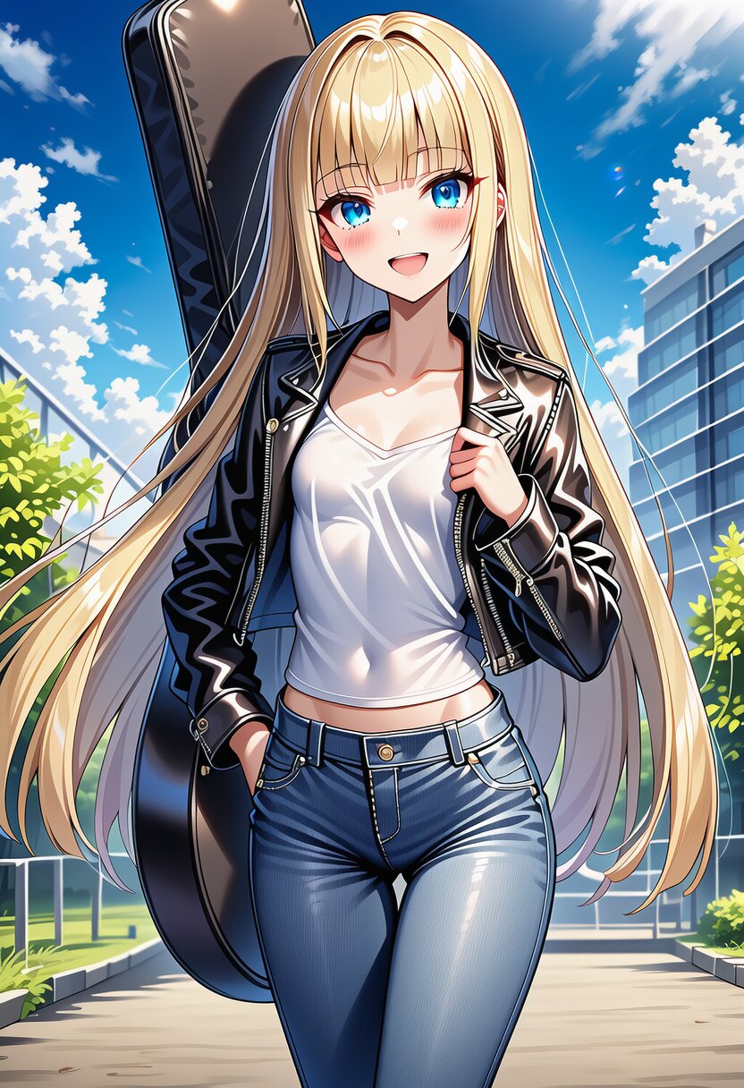 ai-generated, year 2024, anime style, 1girl, solo, midday, in modern town, dynamic angle, masterpiece, best quality, ultra detailed, perfect fingers, high resolution, absurdres, perfect anotomy, detailed background, unity 8k wallpaper, location, no text, very aesthetic, masterpiece, no text