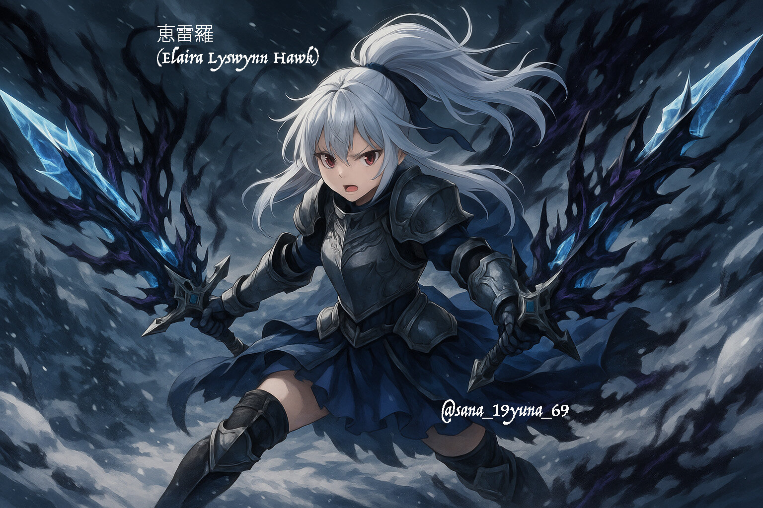 作品は、オリジナルキャラ、第2世代で作成してあった恵雷羅(Elaira Lyswynn Hawk)が夏休みに極寒の地にて涼しい魔剣を持ちさらに涼しくしに行く様子❤️その2
