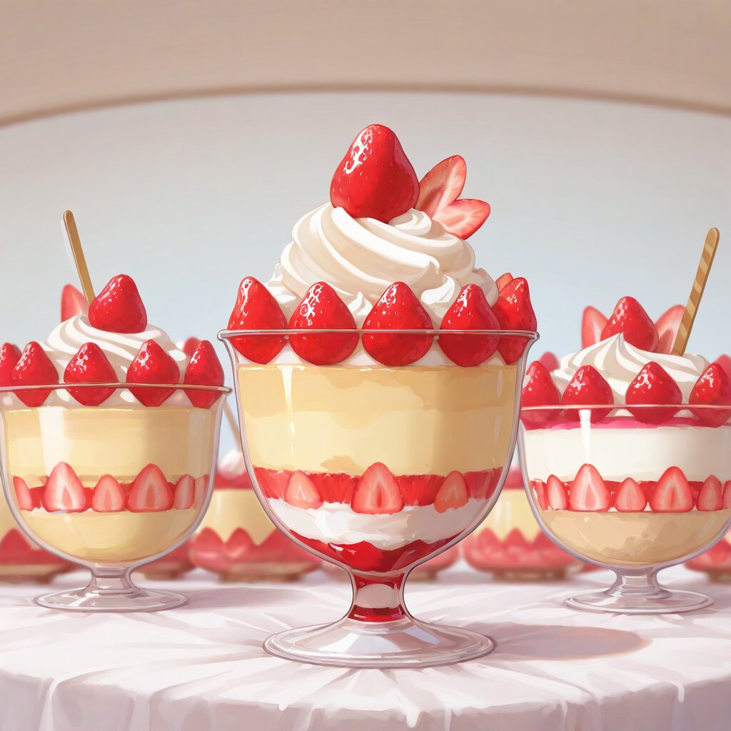 masterpiece,best quality,highres,highly detailed,general,(Too many to count very large pudding strawberry parfait,very wide shot),no humans,realistic,
