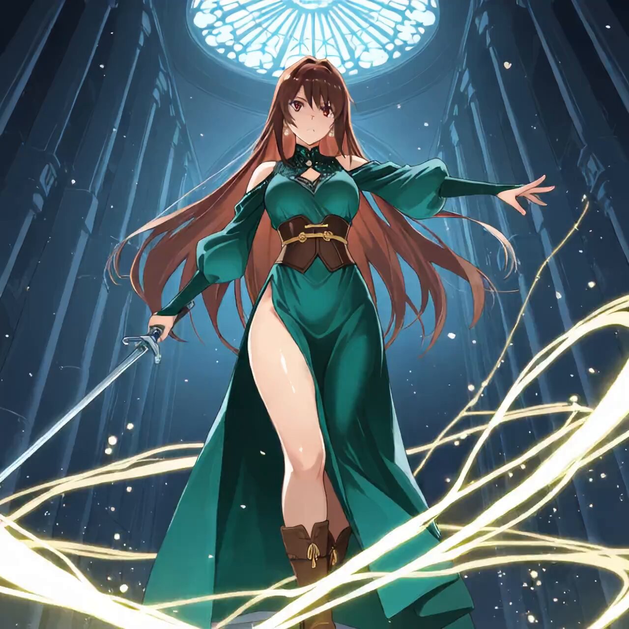A wixia holding a sword. 侠客が剣を構えると、剣の気が侠客の周りを回り始め、次第に大きな空気の渦になって侠客を取り囲む。 When the sword is set up, the sword begins to move around the sword, gradually becoming a large air vortex, and surrounding the customer. 女子持着长剑,剑气缓缓旋转,逐渐形成巨大的气旋,环绕在女子周围。