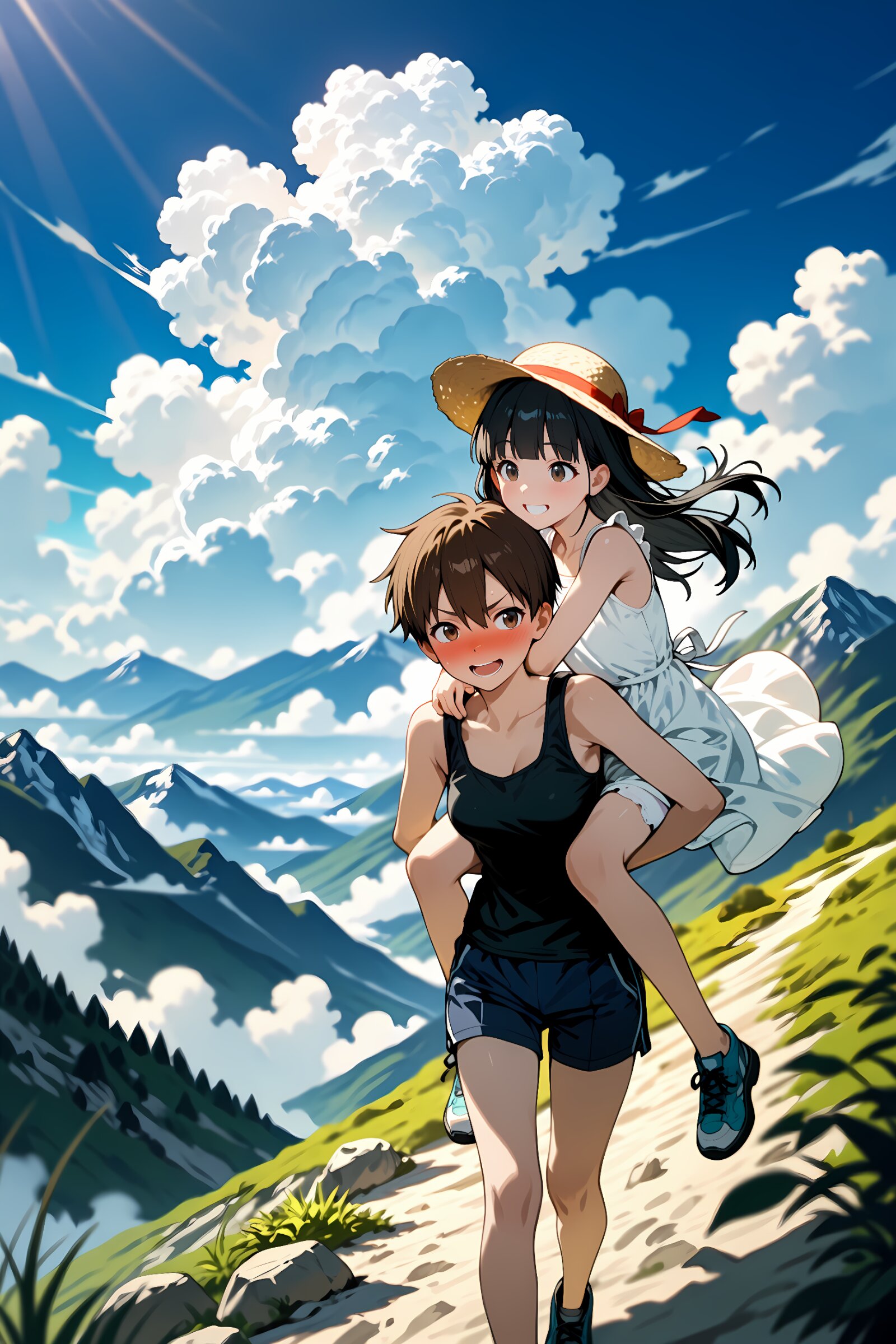 山をゆく少女達 結城らい🖌物書き 2025/8/6使用したAI その他 年齢制限 全年齢 いいね3 シェア #夏休み #山の休日 #登山 #百合 #少女 #麦わら帽子 #黒髪ロング #茶髪ショート #幼なじみ #おんぶ 「ぜえ……はあ……」「うふふ♪ ほんと、あなたって力持ちですね♡」「っざけんな!途中でもう歩けないとか言うから、こうやっておんぶしてやってんだろ!」「ひ弱な私を登山に誘ったのがそもそもの間違いですよ?」「ひ弱なおめーがノコノコ誘いに乗ってくるんじゃねーよ!」これは二人の少女の、ある夏の思い出。 プロンプト なし コメント 送信 結城らい🖌物書き 2025年4月より活動開始 43投稿5フォロー15フォロワー 📚 物語を書く人 × AIと共に創る人。 “欲しかった物語”を、ビジュアルと物語で紡いでいます。 ❤️ エロもロマンも、切なさも。 『バニー・スクワッド』『星恋戦姫』ほか、オリジナル作品で“物語×ビジュアル”の世界を展開中。 ✨ 物語とキャラクターを愛する人、ぜひフォローどうぞ! フォローする 他の作品 全てを見る ブランとノワールの百合キス♡ 戦闘用ウェディングドレスに身を包み、いざ出陣! 歌って踊るバニーアイドル ターボババアと遭遇!【アメリカのYoutuber】 朝市―幻想中華都市― 2人の先輩の意外な関係 月を喰らう女神 黄金バニーの月面ライブ! 月面のバニー戦士 バニークラブへようこそ! トレーラーの上で戦うくノ一達 ベビードールお嬢様達の優雅なお茶会 ベビードール蛍ちゃん💓 ベビードール雷電将軍💕 月を愛でる蛇女神 月のくノ一参上!🌕🥷 野菜を料理する幻想チャイナ娘💖 サキュバスと過ごした夏の思い出💖 もっと見る