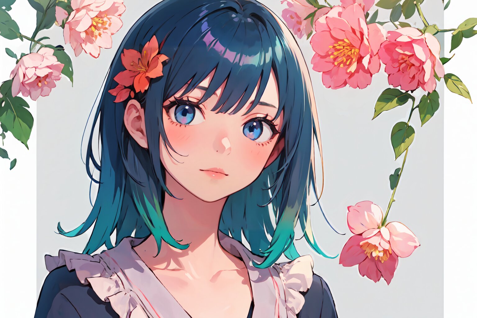 male focus,super fine illustration,absurdres,detailed and intricate, (best quality), BREAK,solo,(1girl),school student, BREAK,school uniform,erafuku,(casual:1.5),kawaii,frill,lace, BREAK,school,(iridescent flower,gradient flower, lots of flowers),japonica,
