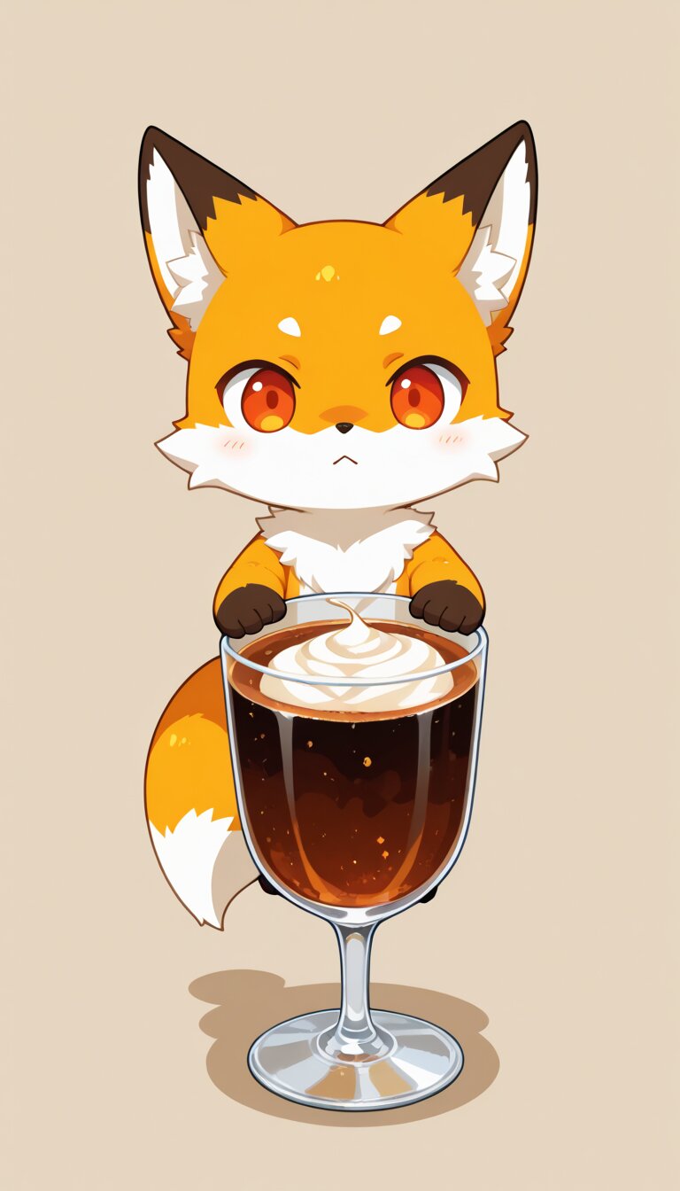 chibi, 1 furry, solo ,fox, (no human:1.6), incoming drink,foreshortening, no lineart,no outline,