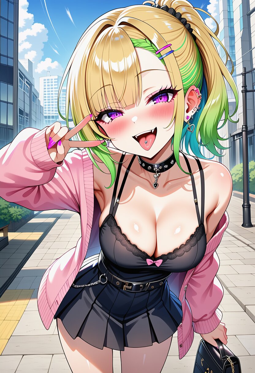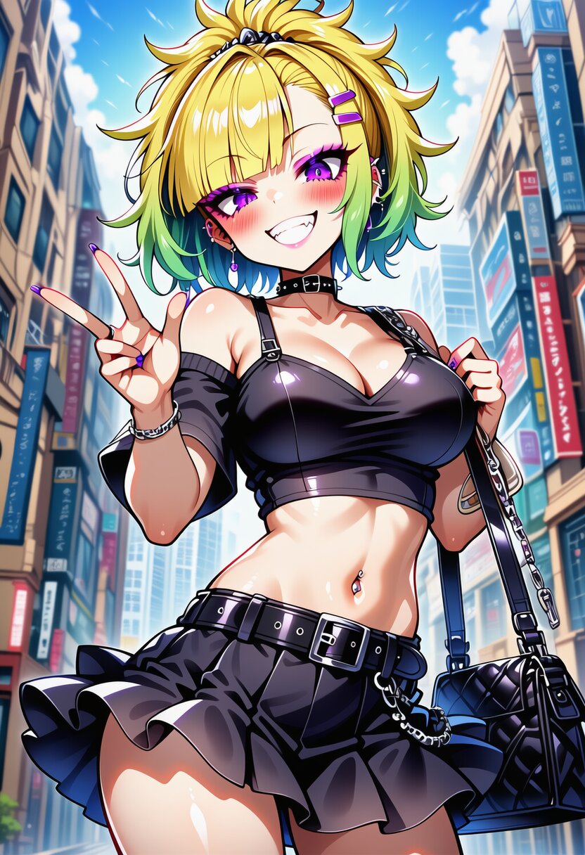 ai-generated, year 2024, anime style, 1girl, solo, sexy posing, in downtown, dynamic angle, masterpiece, best quality, ultra detailed, perfect fingers, high resolution, absurdres, perfect anotomy, detailed background, unity 8k wallpaper, location, very aesthetic, masterpiece, no text
