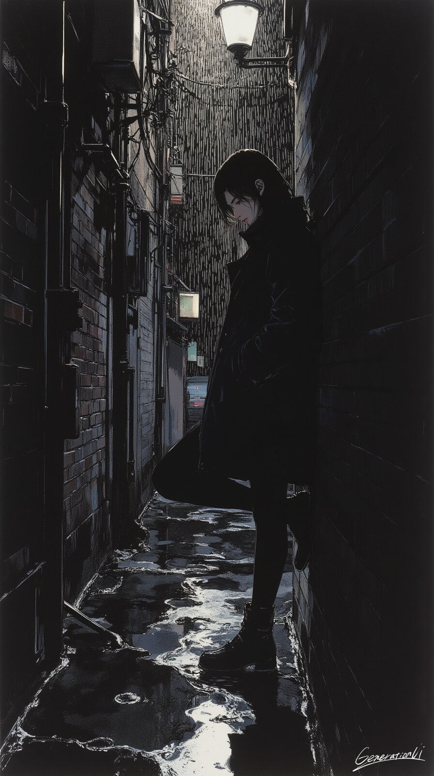 雨に溶ける街角/スマホ壁紙アーカイブ Generation UI 2025/8/15使用したAI FLUX.1 年齢制限 全年齢 いいね3 シェア #裏路地 #雨降り #真夜中 #孤独 #スマホ壁紙 #物語 #オリジナル 【雨に溶ける街角】雨はアスファルトを滲ませ、街の輪郭をゆっくり溶かしていった。電灯の光は水面に広がる波紋に呑まれ、赤も青も形を失う。路地の隅、壁にもたれた彼女は、まるで自分もその景色の一部になったかのように動かない。吐息は白く、髪は濡れ、足元の水たまりに映る影が揺れる。通り過ぎる誰もが、この街が少しずつ崩れていくことに気づかない。それを知っているのは、彼女と雨だけだった。 プロンプト なし コメント 送信 Generation UI 2023年1月より活動開始 293投稿0フォロー17フォロワー ✨心ときめくスマホ壁紙をAIイラストでお届けします✨ 眺めているだけで、ふと気持ちが動くようなものを目指しています💕 【受賞歴】 ・世界最大級の AI画像生成プラットフォーム Civitai 主催の国際コンテストで受賞 (グレートハロウィンコンテスト2025Gothic Glamour画像部門1位https://civitai.com/articles/22348) フォローする 他の作品 全てを見る レンガ色の午後、風がやさしく通り抜ける街/スマホ壁紙アーカイブ 世界がオレンジに染まるとき/スマホ壁紙アーカイブ ボトルの中を走る小さな鉄道 / スマホ壁紙アーカイブ リビングに舞い降りた空のワンダーランド/スマホ壁紙アーカイブ 灰色の世界でひとつ息をする/スマホ壁紙アーカイブ 荷物より大きな夢を抱えて/スマホ壁紙アーカイブ 極赤の世界にひとつの祈り/スマホ壁紙アーカイブ 石橋のアーチが描く秋の交響曲/スマホ壁紙アーカイブ この雨を切り裂け!/スマホ壁紙アーカイブ 美しき弓、咲き乱れる世界/スマホ壁紙アーカイブ 貴方と過ごす幸せテーブル/スマホ壁紙アーカイブ 読書会はまだ始まらない/スマホ壁紙アーカイブ 物語が動き出す山岳メトロポリス/スマホ壁紙アーカイブ 戦火を纏うエレガンス/スマホ壁紙アーカイブ きのこライトが灯す秘密の谷/スマホ壁紙アーカイブ 木工職人の静かな集中/スマホ壁紙アーカイブ 書棚に挟まれた異世界行き/スマホ壁紙アーカイブ ノスタルジック秋の風景[5]/スマホ壁紙アーカイブ もっと見る
