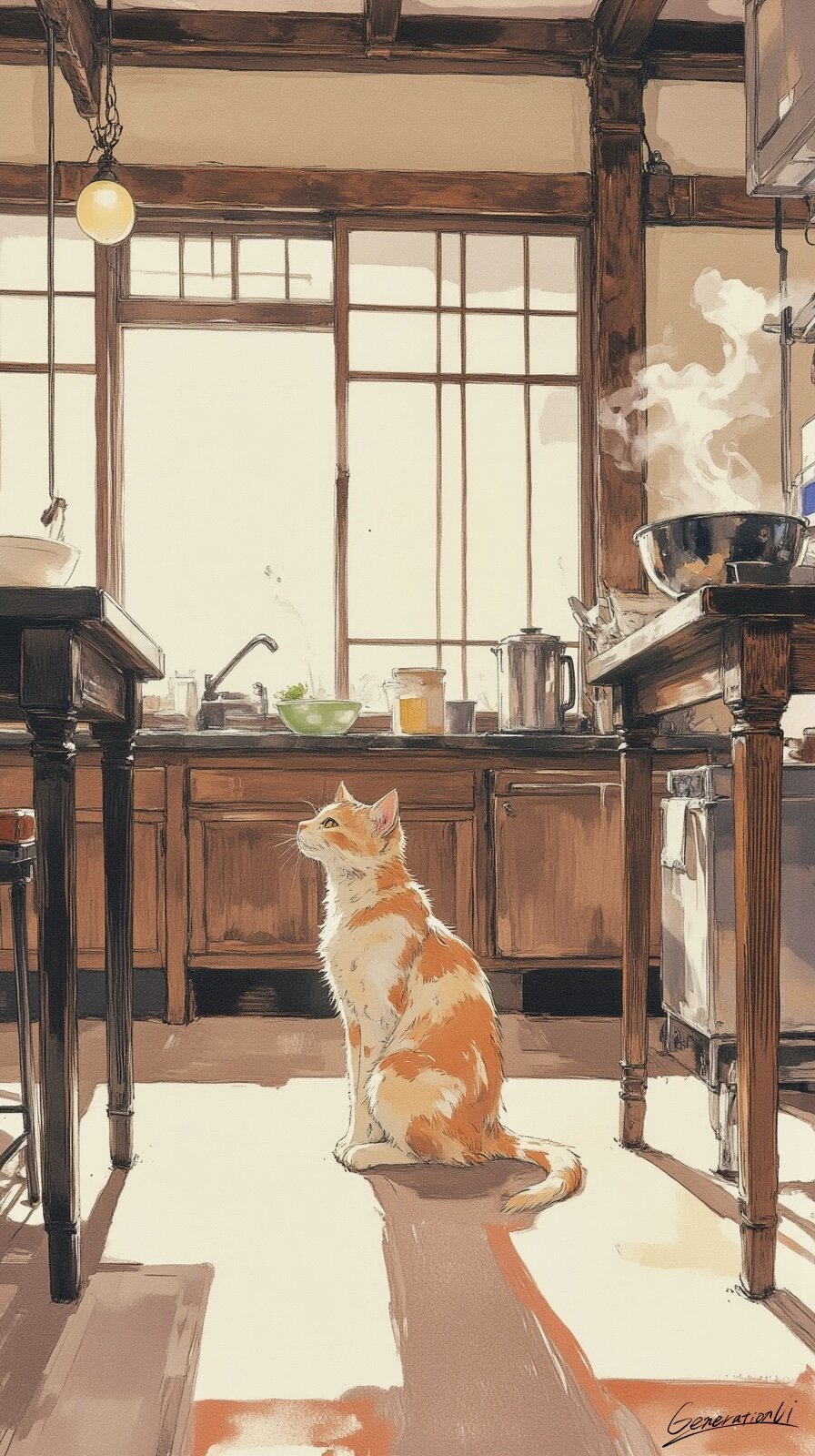 コック長、ただいま観察中/スマホ壁紙アーカイブ Generation UI 2025/8/16使用したAI FLUX.1 年齢制限 全年齢 いいね3 シェア #台所 #猫目線 #レトロキッチン #コミカル #朝時間 #厨房 #スマホ壁紙 #物語 #オリジナル 【コック長、ただいま観察中】吾輩はこの厨房の絶対的支配者ニャ。人間は「料理している」と思っているようだが、実際は吾輩の指示通りに動いているだけニャ。昨日のスープが薄かったのは記録済みニャ。今日こそ改善を要求するニャ。包丁の音が遅くなれば「もっとリズムよく!」と目で指示ニャ。それでもミスが出れば──仕方ない、味見という名の処罰を下すニャ。全ては最高のご褒美を得るための、壮大な作戦ニャ。 プロンプト なし コメント 送信 Generation UI 2023年1月より活動開始 293投稿0フォロー17フォロワー ✨心ときめくスマホ壁紙をAIイラストでお届けします✨ 眺めているだけで、ふと気持ちが動くようなものを目指しています💕 【受賞歴】 ・世界最大級の AI画像生成プラットフォーム Civitai 主催の国際コンテストで受賞 (グレートハロウィンコンテスト2025Gothic Glamour画像部門1位https://civitai.com/articles/22348) フォローする 他の作品 全てを見る レンガ色の午後、風がやさしく通り抜ける街/スマホ壁紙アーカイブ 世界がオレンジに染まるとき/スマホ壁紙アーカイブ ボトルの中を走る小さな鉄道 / スマホ壁紙アーカイブ リビングに舞い降りた空のワンダーランド/スマホ壁紙アーカイブ 灰色の世界でひとつ息をする/スマホ壁紙アーカイブ 荷物より大きな夢を抱えて/スマホ壁紙アーカイブ 極赤の世界にひとつの祈り/スマホ壁紙アーカイブ 石橋のアーチが描く秋の交響曲/スマホ壁紙アーカイブ この雨を切り裂け!/スマホ壁紙アーカイブ 美しき弓、咲き乱れる世界/スマホ壁紙アーカイブ 貴方と過ごす幸せテーブル/スマホ壁紙アーカイブ 読書会はまだ始まらない/スマホ壁紙アーカイブ 物語が動き出す山岳メトロポリス/スマホ壁紙アーカイブ 戦火を纏うエレガンス/スマホ壁紙アーカイブ きのこライトが灯す秘密の谷/スマホ壁紙アーカイブ 木工職人の静かな集中/スマホ壁紙アーカイブ 書棚に挟まれた異世界行き/スマホ壁紙アーカイブ ノスタルジック秋の風景[5]/スマホ壁紙アーカイブ もっと見る
