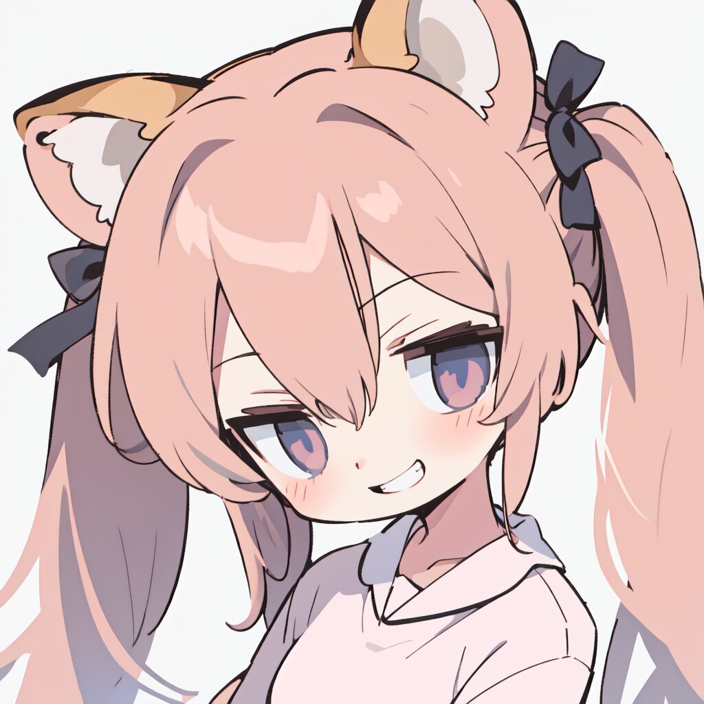 best quality, (empty eyes:-1.0),close-up, solo,1girl,(chibi:1.4),twintails,lion ears,teeth,grin,head tilt, pajamas, <lora:style002:0.3>, <lora:fineline_v1:1.0>