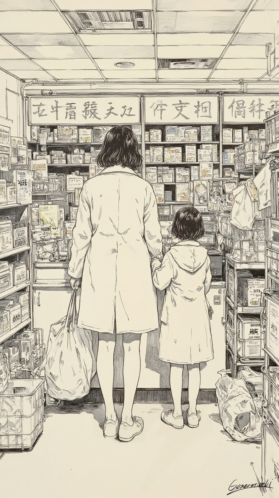 一緒に選ぶ日常/スマホ壁紙アーカイブ Generation UI 2025/8/21使用したAI FLUX.1 年齢制限 全年齢 いいね3 シェア #買い物 #母と娘 #日常のひとコマ #ラインアート #スマホ壁紙 #物語 #オリジナル 【一緒に選ぶ日常】「お菓子はひとつだけね」母の言葉に、娘はまるで重大決断をする議員のような顔になる。チョコか、グミか、はたまたプリンか。棚の前での沈黙は30秒、しかし体感では3時間。最終的に選ばれたのは、母の手にあった特売品だった。──そう、いつも勝つのは“主婦の目”。 プロンプト なし コメント 送信 Generation UI 2023年1月より活動開始 293投稿0フォロー17フォロワー ✨心ときめくスマホ壁紙をAIイラストでお届けします✨ 眺めているだけで、ふと気持ちが動くようなものを目指しています💕 【受賞歴】 ・世界最大級の AI画像生成プラットフォーム Civitai 主催の国際コンテストで受賞 (グレートハロウィンコンテスト2025Gothic Glamour画像部門1位https://civitai.com/articles/22348) フォローする 他の作品 全てを見る レンガ色の午後、風がやさしく通り抜ける街/スマホ壁紙アーカイブ 世界がオレンジに染まるとき/スマホ壁紙アーカイブ ボトルの中を走る小さな鉄道 / スマホ壁紙アーカイブ リビングに舞い降りた空のワンダーランド/スマホ壁紙アーカイブ 灰色の世界でひとつ息をする/スマホ壁紙アーカイブ 荷物より大きな夢を抱えて/スマホ壁紙アーカイブ 極赤の世界にひとつの祈り/スマホ壁紙アーカイブ 石橋のアーチが描く秋の交響曲/スマホ壁紙アーカイブ この雨を切り裂け!/スマホ壁紙アーカイブ 美しき弓、咲き乱れる世界/スマホ壁紙アーカイブ 貴方と過ごす幸せテーブル/スマホ壁紙アーカイブ 読書会はまだ始まらない/スマホ壁紙アーカイブ 物語が動き出す山岳メトロポリス/スマホ壁紙アーカイブ 戦火を纏うエレガンス/スマホ壁紙アーカイブ きのこライトが灯す秘密の谷/スマホ壁紙アーカイブ 木工職人の静かな集中/スマホ壁紙アーカイブ 書棚に挟まれた異世界行き/スマホ壁紙アーカイブ ノスタルジック秋の風景[5]/スマホ壁紙アーカイブ もっと見る