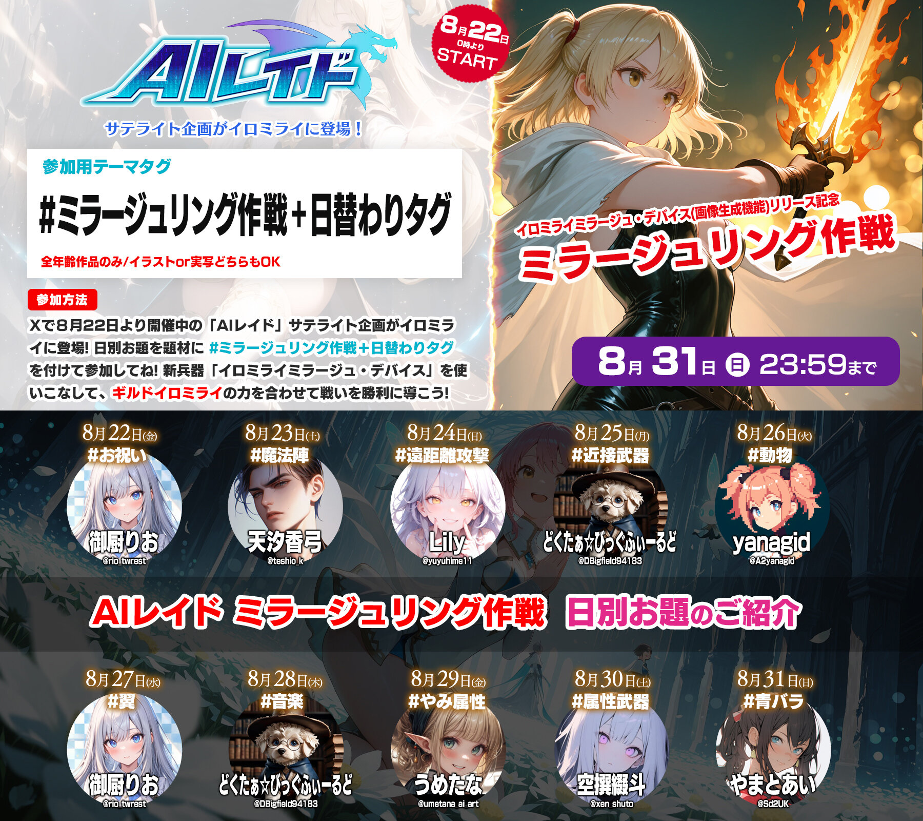御厨りお @rio_twrest さん主催のAIレイド ミラージュリング作戦のサテライト企画をイロミライで開催いたします!