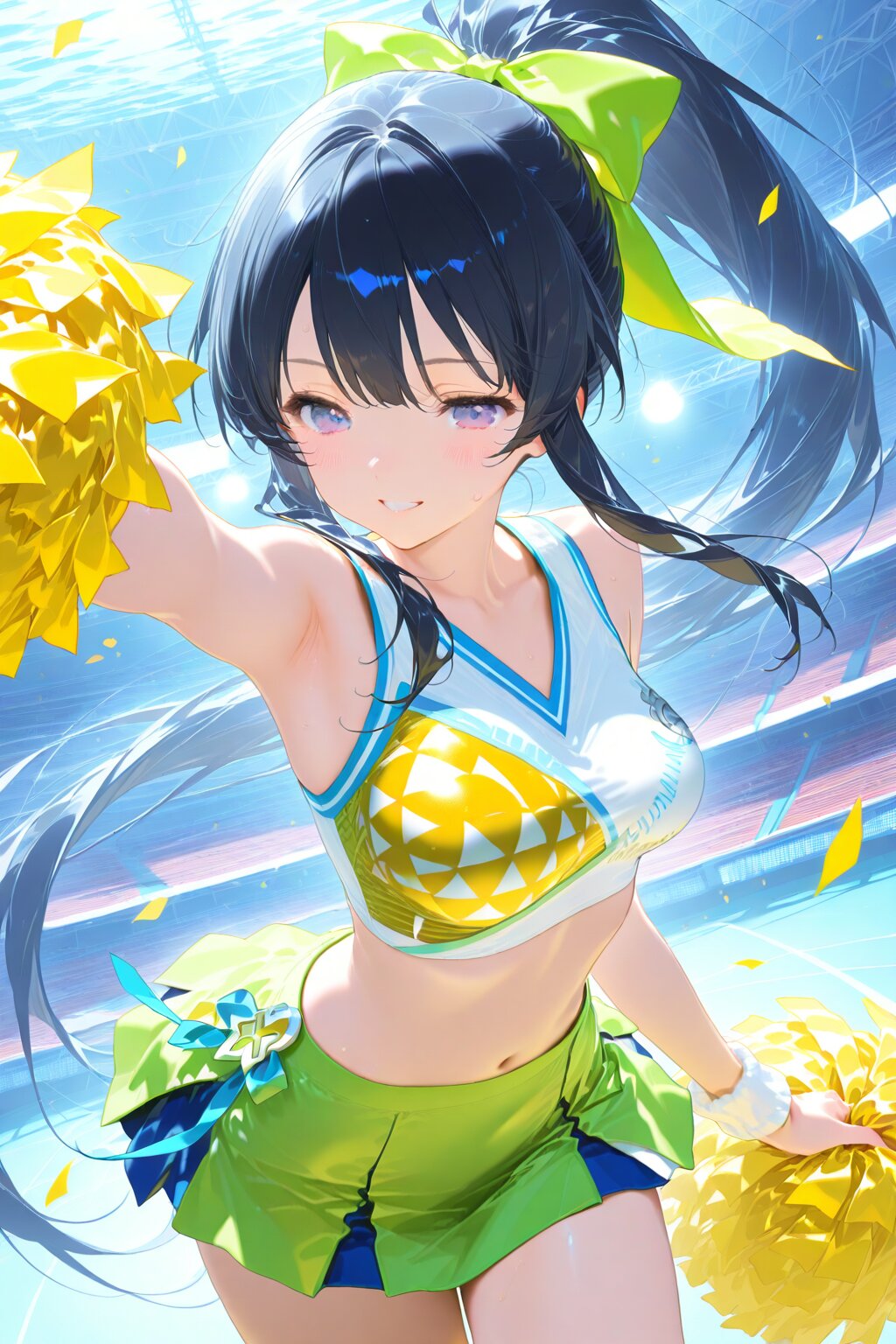 best quality,absurdres,8k,ultra detailed,very aesthetic,1 girl, cheer girl, smile, cowboy shot