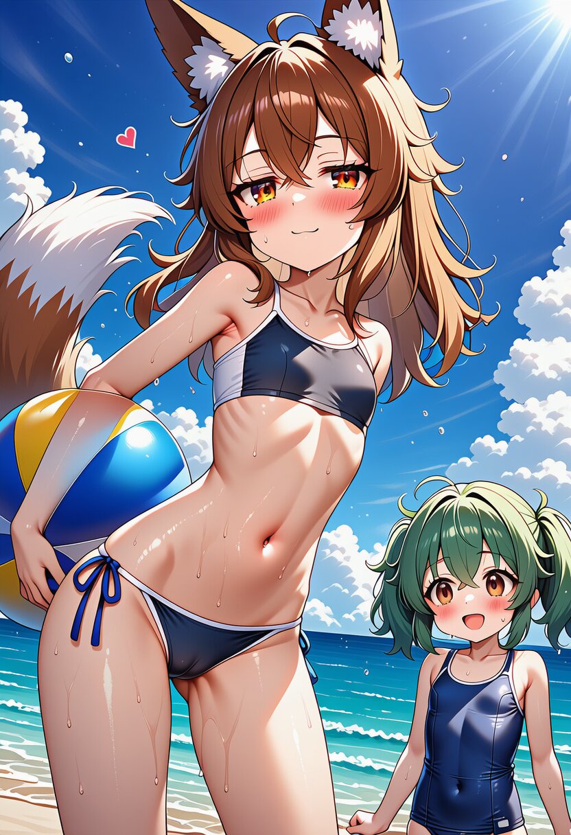 ai-generated, year 2024, anime style, 2girl, yuri, midday, outdoor, beach, dynamic angle, masterpiece, best quality, ultra detailed, perfect fingers, high resolution, absurdres, perfect anotomy, detailed background, unity 8k wallpaper, very aesthetic, masterpiece, no text