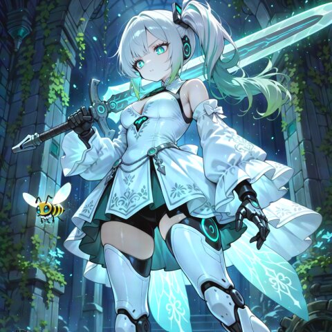 背景の光の粒は、まるで夏の夜に蛍が舞っているようで、さらに暑さのせいで袖が汗に濡れ、内側の肌がうっすらと透けて見えていた👀