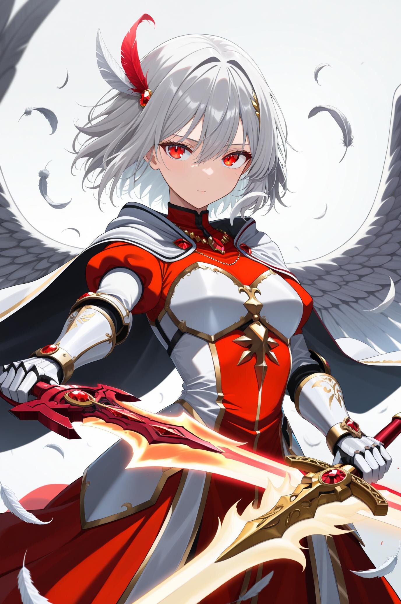 白き鎧と外套は血涙を受け、舞い落ちる羽は夜を裂き、銀髪は黎明を映す。