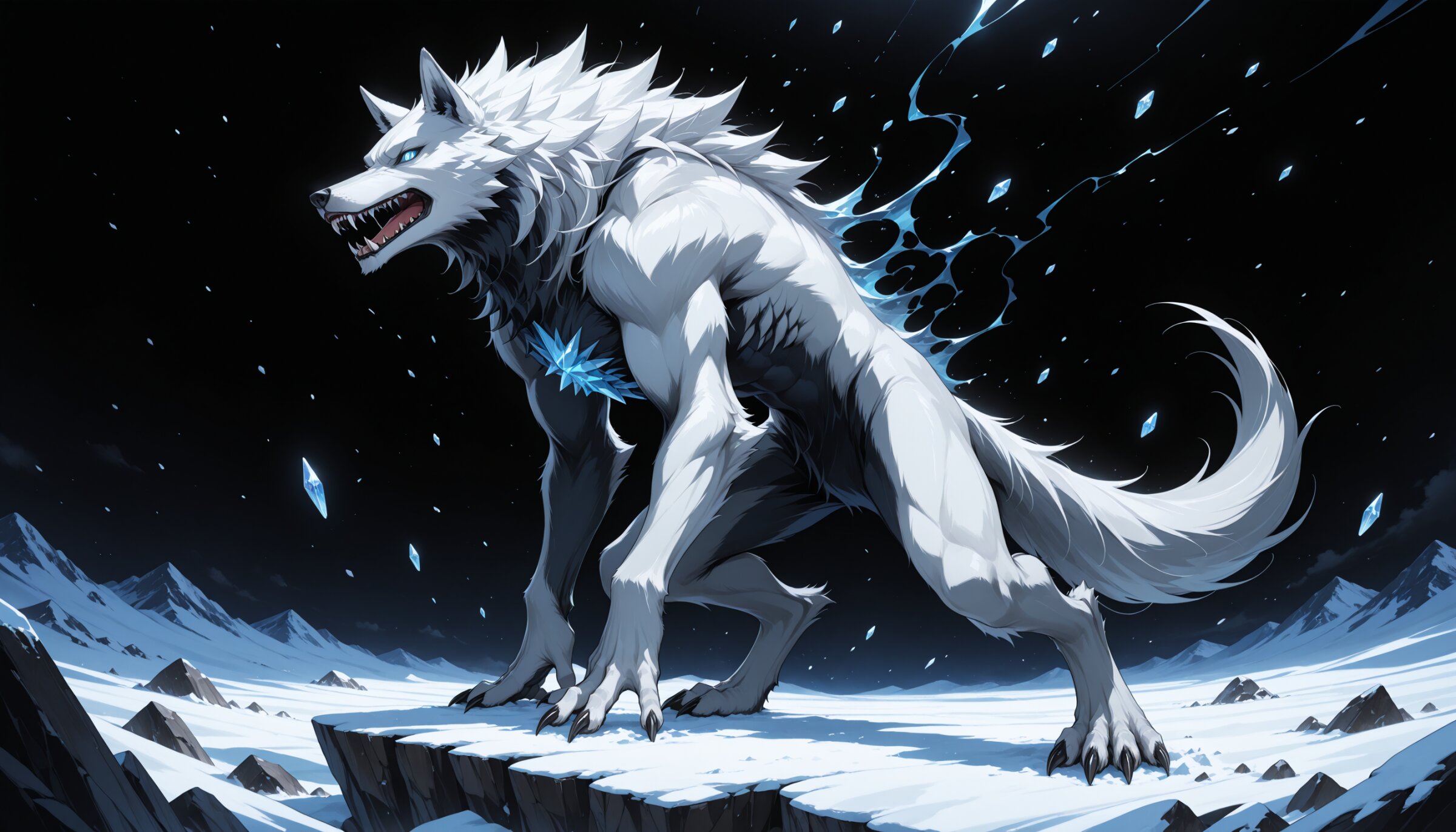 Best quality, Masterpieces, negative space, anime-style illustration, fine detail, 1 ice werewolf,