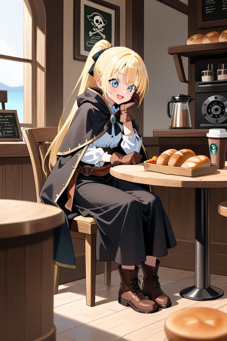 港の小さなカフェ。焼きたてのパンが割れる音、マグから立つ湯気。