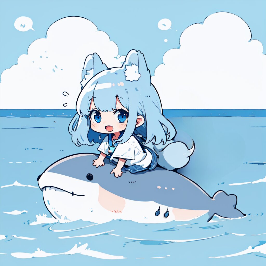 best quality, (empty eyes:-1.0), solo,1girl,(chibi:1.4),wolf ears, outdoors,ocean,whale, <lora:fineline_v1:1.0>