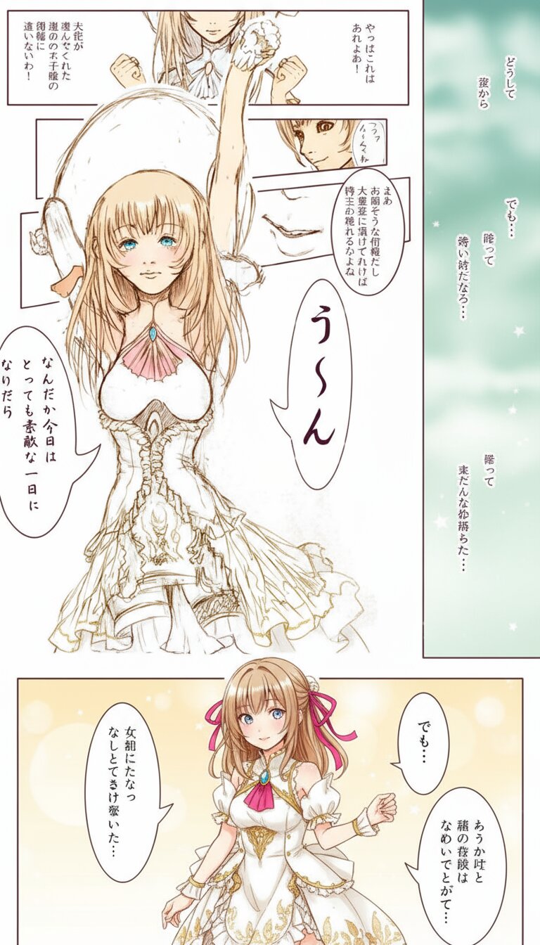 漫画制作 Nano Banana Challenge 龍神と風の訪れる処【★BOOTH漫画販売中★】 2025/9/3使用したAI その他 年齢制限 全年齢 いいね2 シェア #ティファーナ #nanobanana #chatgpt #創作 #漫画 #オリジナル #オリキャラ #美少女 話題のAI、『nano banana』で漫画制作にどこまで活かせられるか実験してみました✨作品はpixivやFANBOXに投稿している漫画作品です1の画像をどこまで完成に近づけられるか結果は画像の感じですカラーのキャラに置き換える、清書、線を綺麗にする、漫画を完成させてとか、参考画像なしで「カラーに」とか、逆にシーンを細かく解説して指示などいろいろ試してみたけどうまくいかなかったです😅工夫が必要そう😆👍ちなみに文章はGPT5に見せてみた反応 プロンプト なし コメント 送信 龍神と風の訪れる処【★BOOTH漫画販売中★】 2022年12月より活動開始 78投稿69フォロー70フォロワー pixivで漫画を公開中★ 2024.05からX本格利用✨ 少しでも興味をお持ちいただけたら気軽にフォローいただけると嬉しいです🌟 自分で描いた絵やデザインをもとにAI補助でキャラクターを作成して世界観を拡大していく事に挑戦中! フォローする 他の作品 全てを見る 【エリティア】 オリジナル漫画 (手描き)【Eritia】 Original Manga (Hand-drawn) 昨日のNanoBanana Challenge のついでに試した別のAI Another AI I tried while doing yesterday's NanoBanana Challenge nano banana 漫画リメイクチャレンジ Manga Remake Challenge ChatGPT5になったので、前回のおんぶ絵を試しに描かせてみた🖼️✍️ My漫画のキャラのGPT産イラスト🖼️ 【エリティア】[創作漫画] ✨設定資料公開✨ 📽️PixVerseで簡単動画生成🎞️ 【エリティア】[創作漫画] 追いかけっこ 生存報告☆ 【エリティア】[創作漫画] ヒロインを動かしてみた✨ うさぎ好きの女の子 【エリティア】[創作漫画] チェルシェ Happy Halloween 02 [完全版] Happy Halloween 02 【エリティア】[創作漫画] 寝そべりティファーナ Happy Halloween ! 【エリティア】[創作漫画] キャラデ中 02 【エリティア】[創作漫画] 制作中 もっと見る