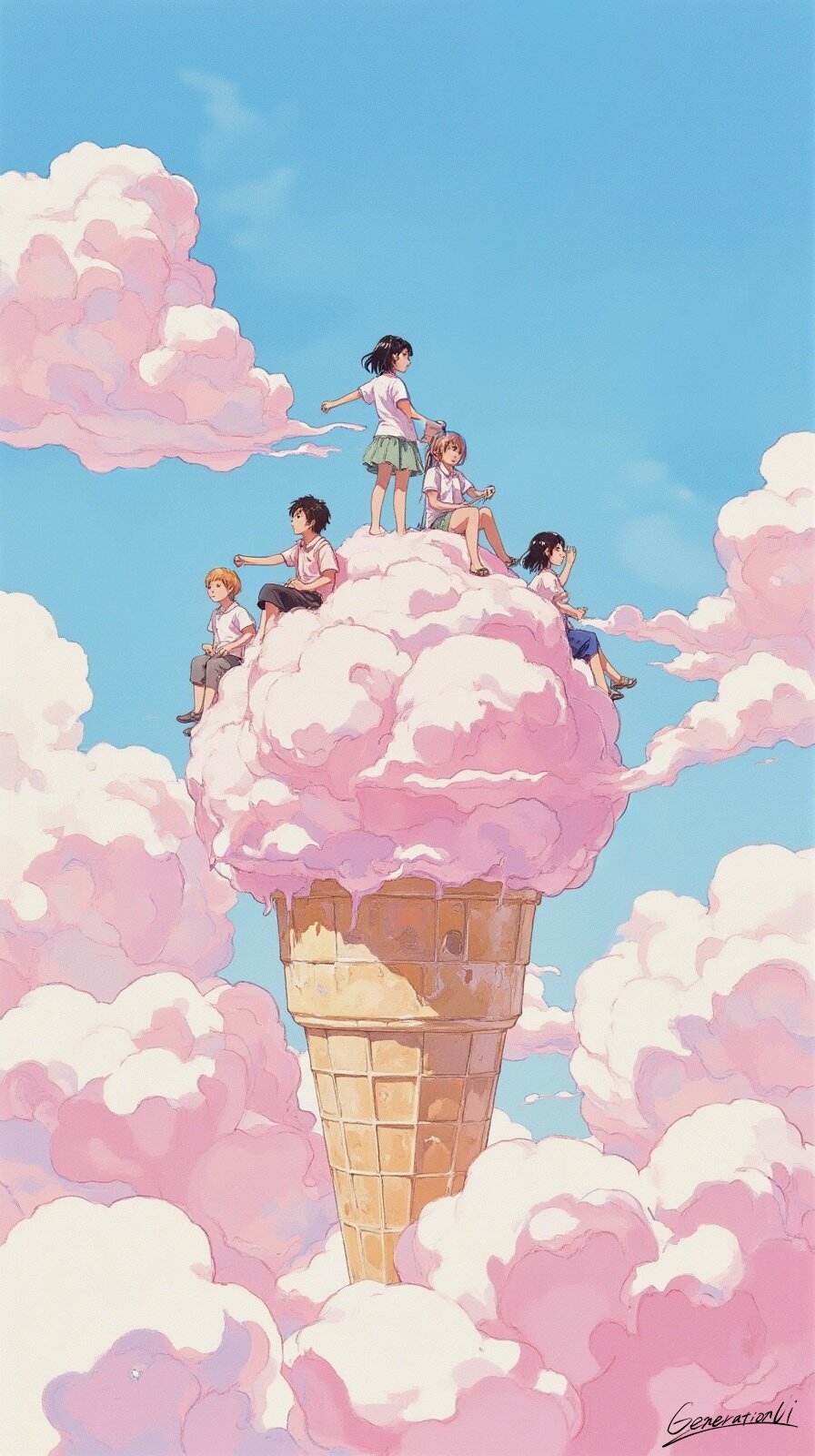 空に浮かぶソフトクリーム島/スマホ壁紙アーカイブ