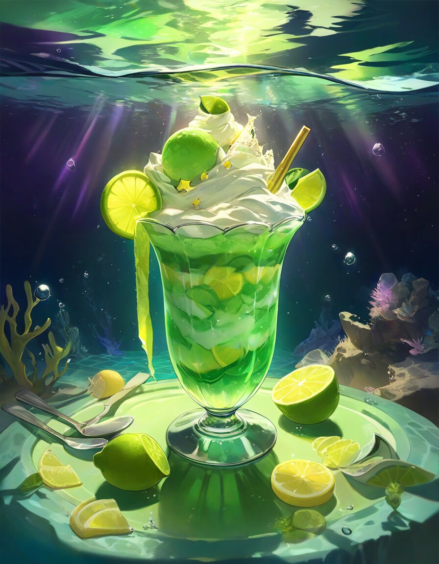 lemon lime,star,sundae,masterpiece,green skin,underwater,soda,muscat,glitter,aurora, undersea