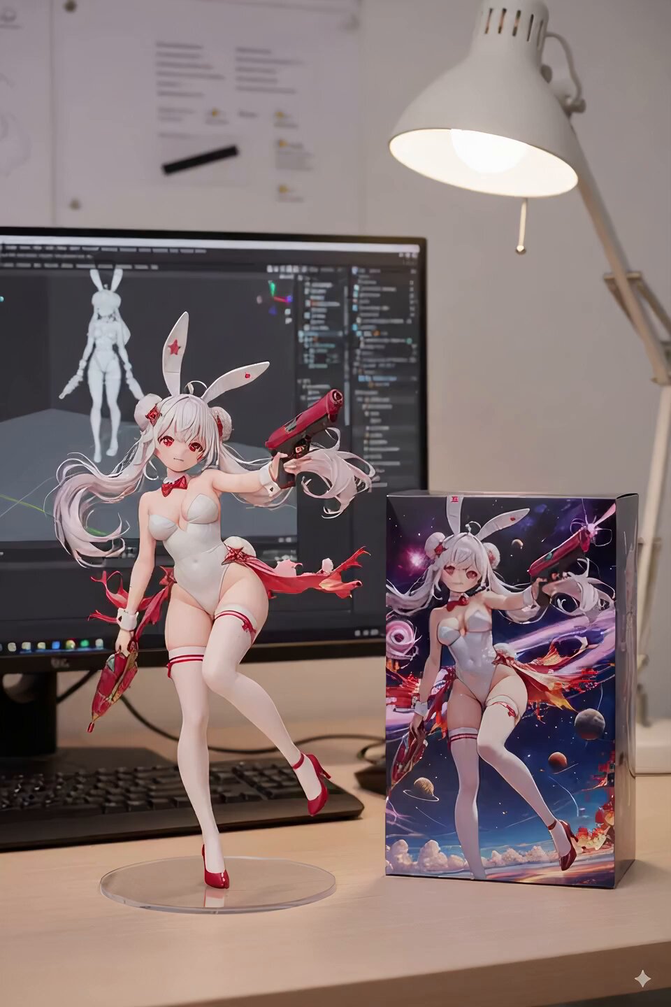机の上に――七分の一サイズのスペースバニー九屋敷美羽フィギュアと、そのパッケージが何の前触れもなく飾られている。