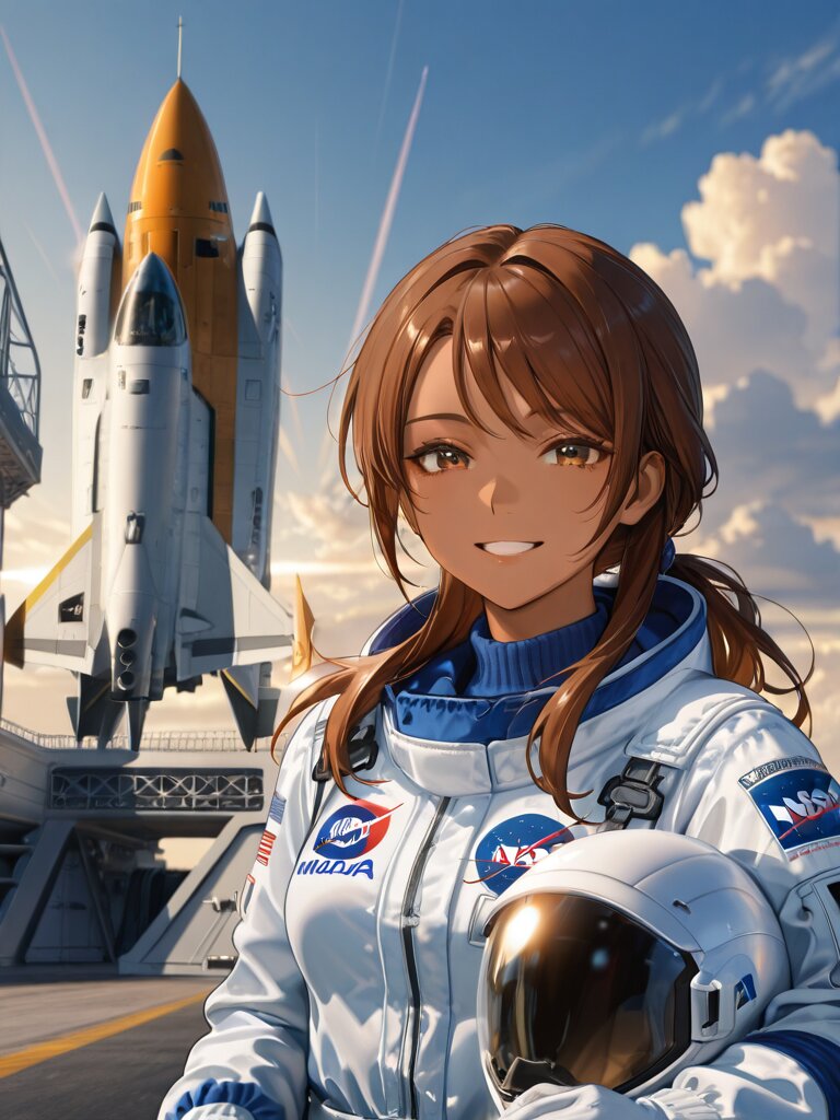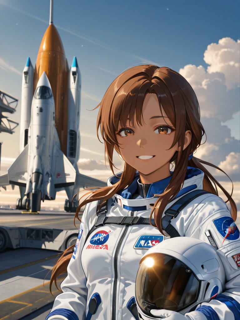 さて、プロンプトですが今回はGoogle AI Studioで生成したものにi2iで生成し直しました。Illustriousでは出ないんですよ...スペースシャトルが(汗...っで、Google AI Studioでは女性が好みにならないんですよw...何がダメだったのかが分かる様に5枚目にIllustrious環境で生成した絵面を載せておきますね。