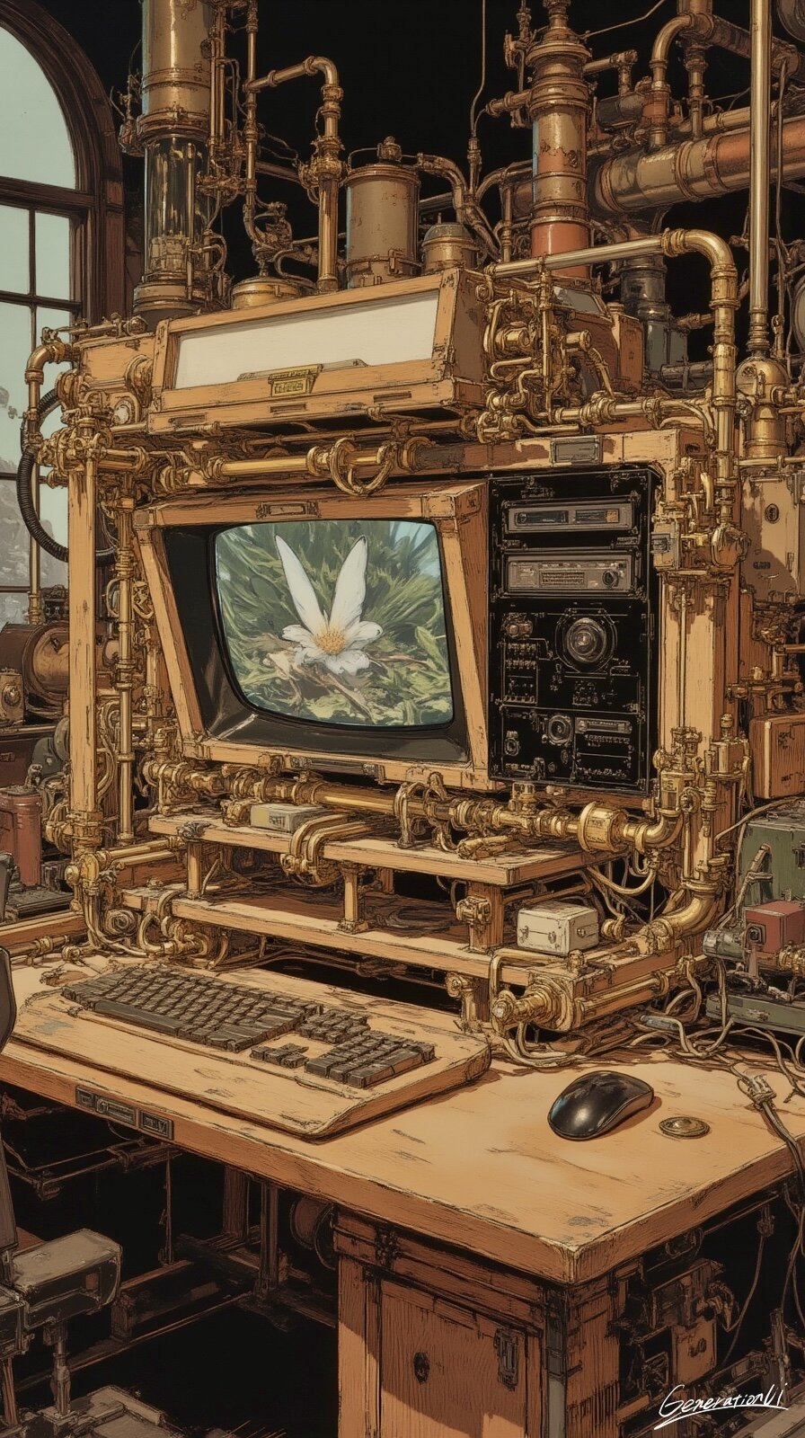 植物を映すスチームパンクPC/スマホ壁紙アーカイブ Generation UI 2025/9/15使用したAI FLUX.1 年齢制限 全年齢 いいね2 シェア #スチームパンク #デスクトップ #パソコン #真鍮 #スマホ壁紙 #物語 #オリジナル 【植物を映すスチームパンクPC】真鍮の管と木の板で組み上げられたそのPCは、かつてデータ解析のために造られたものだった。しかし今、その古びたモニターに映るのは、ただ一輪の花。蒸気の唸りと歯車の軋みのなかで、機械は静かに自然を投影し続ける。まるで人間たちが失った世界を忘れさせないかのように。この端末を起動するたび、研究者は心の奥底に芽生える確かな感覚に気づく──機械が進歩しても、私たちは結局、花を見つめたいのだと。 プロンプト なし コメント 送信 Generation UI 2023年1月より活動開始 293投稿0フォロー17フォロワー ✨心ときめくスマホ壁紙をAIイラストでお届けします✨ 眺めているだけで、ふと気持ちが動くようなものを目指しています💕 【受賞歴】 ・世界最大級の AI画像生成プラットフォーム Civitai 主催の国際コンテストで受賞 (グレートハロウィンコンテスト2025Gothic Glamour画像部門1位https://civitai.com/articles/22348) フォローする 他の作品 全てを見る レンガ色の午後、風がやさしく通り抜ける街/スマホ壁紙アーカイブ 世界がオレンジに染まるとき/スマホ壁紙アーカイブ ボトルの中を走る小さな鉄道 / スマホ壁紙アーカイブ リビングに舞い降りた空のワンダーランド/スマホ壁紙アーカイブ 灰色の世界でひとつ息をする/スマホ壁紙アーカイブ 荷物より大きな夢を抱えて/スマホ壁紙アーカイブ 極赤の世界にひとつの祈り/スマホ壁紙アーカイブ 石橋のアーチが描く秋の交響曲/スマホ壁紙アーカイブ この雨を切り裂け!/スマホ壁紙アーカイブ 美しき弓、咲き乱れる世界/スマホ壁紙アーカイブ 貴方と過ごす幸せテーブル/スマホ壁紙アーカイブ 読書会はまだ始まらない/スマホ壁紙アーカイブ 物語が動き出す山岳メトロポリス/スマホ壁紙アーカイブ 戦火を纏うエレガンス/スマホ壁紙アーカイブ きのこライトが灯す秘密の谷/スマホ壁紙アーカイブ 木工職人の静かな集中/スマホ壁紙アーカイブ 書棚に挟まれた異世界行き/スマホ壁紙アーカイブ ノスタルジック秋の風景[5]/スマホ壁紙アーカイブ もっと見る
