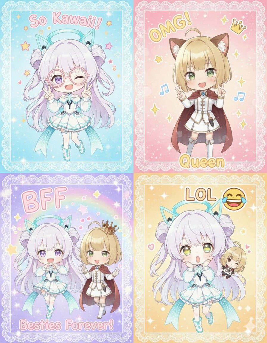 こちらは一旦ちびキャラ化して、2人の頭身と色味が合うように調整してから再生成をしました。