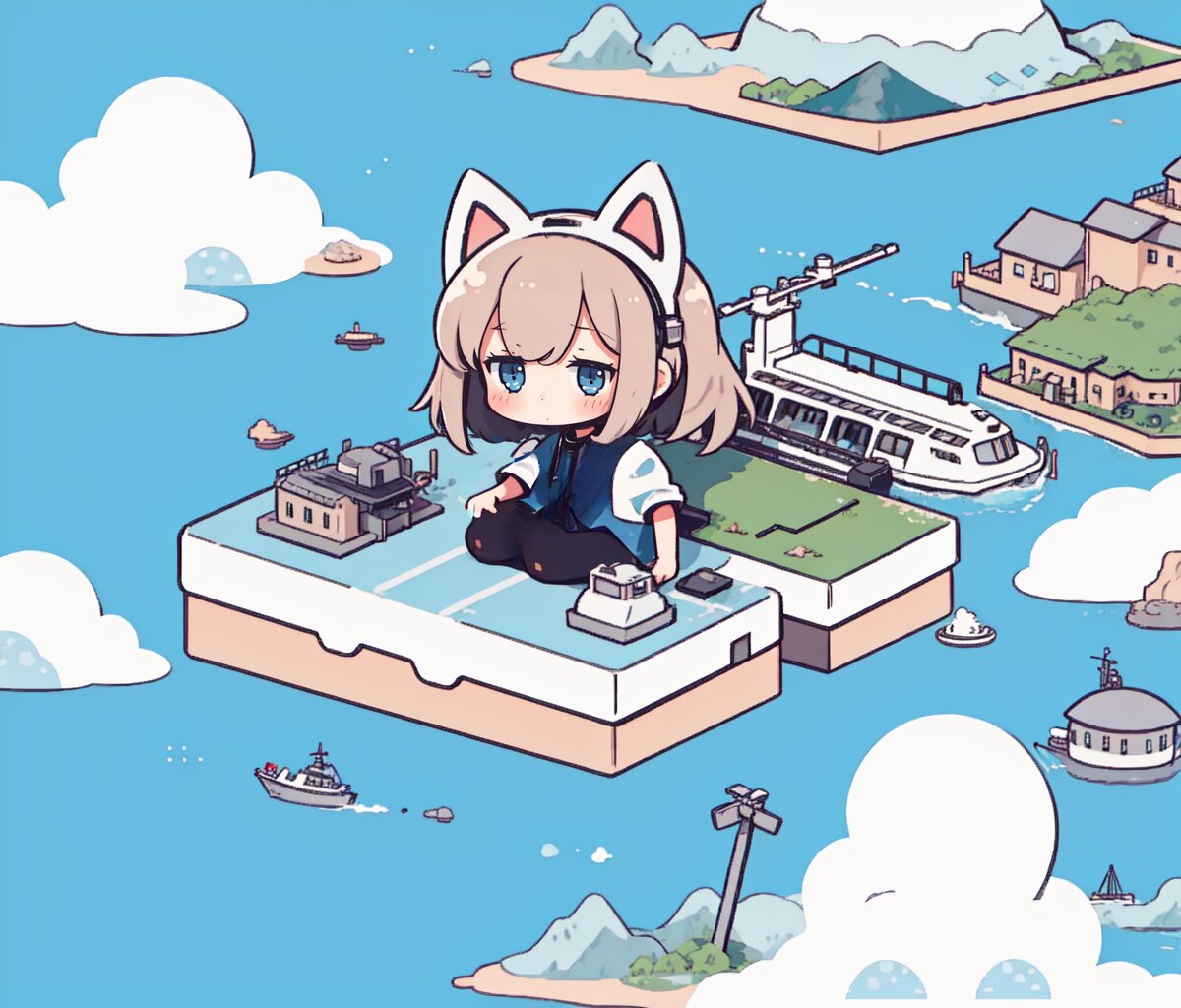 best quality, (solo,1girl,chibi:1.2),cat ears, (uninhabited island isometric:1.2),ocean background, <lora:fineline_v2:1.0>
